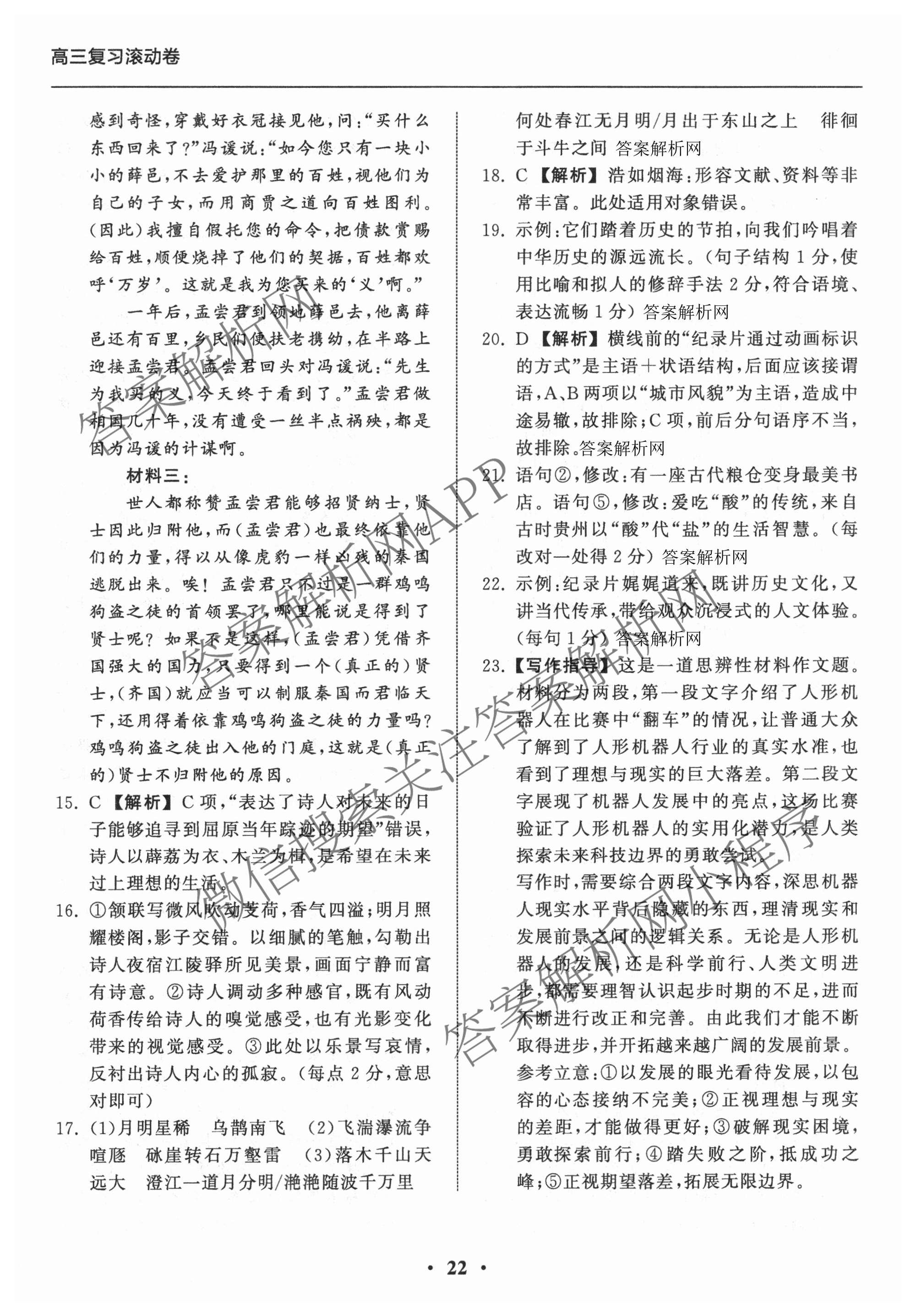 2025~2026(衡中同卷)·学年度高三复习滚动卷(六)6语文答案