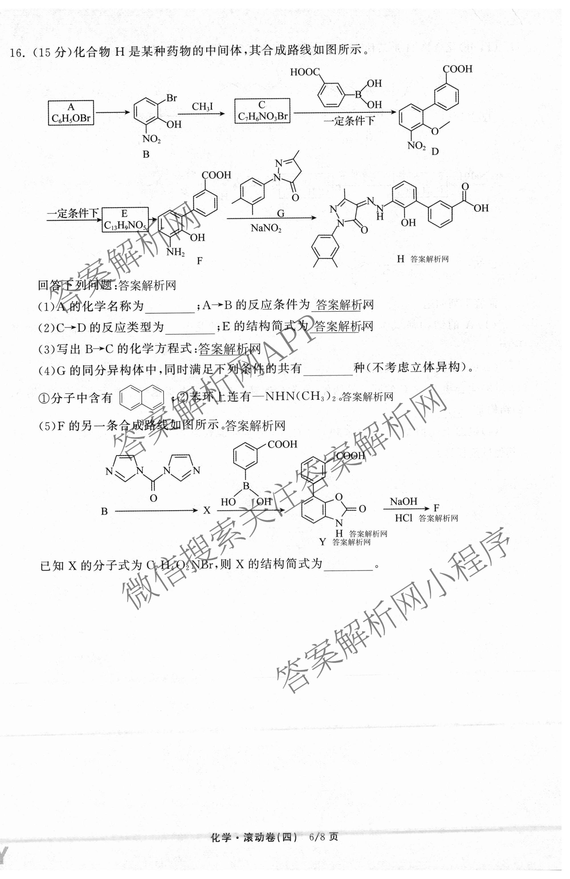 - [衡中同卷]2025~2026学年度(高三)复习滚动卷(四)4化学(JY)答案