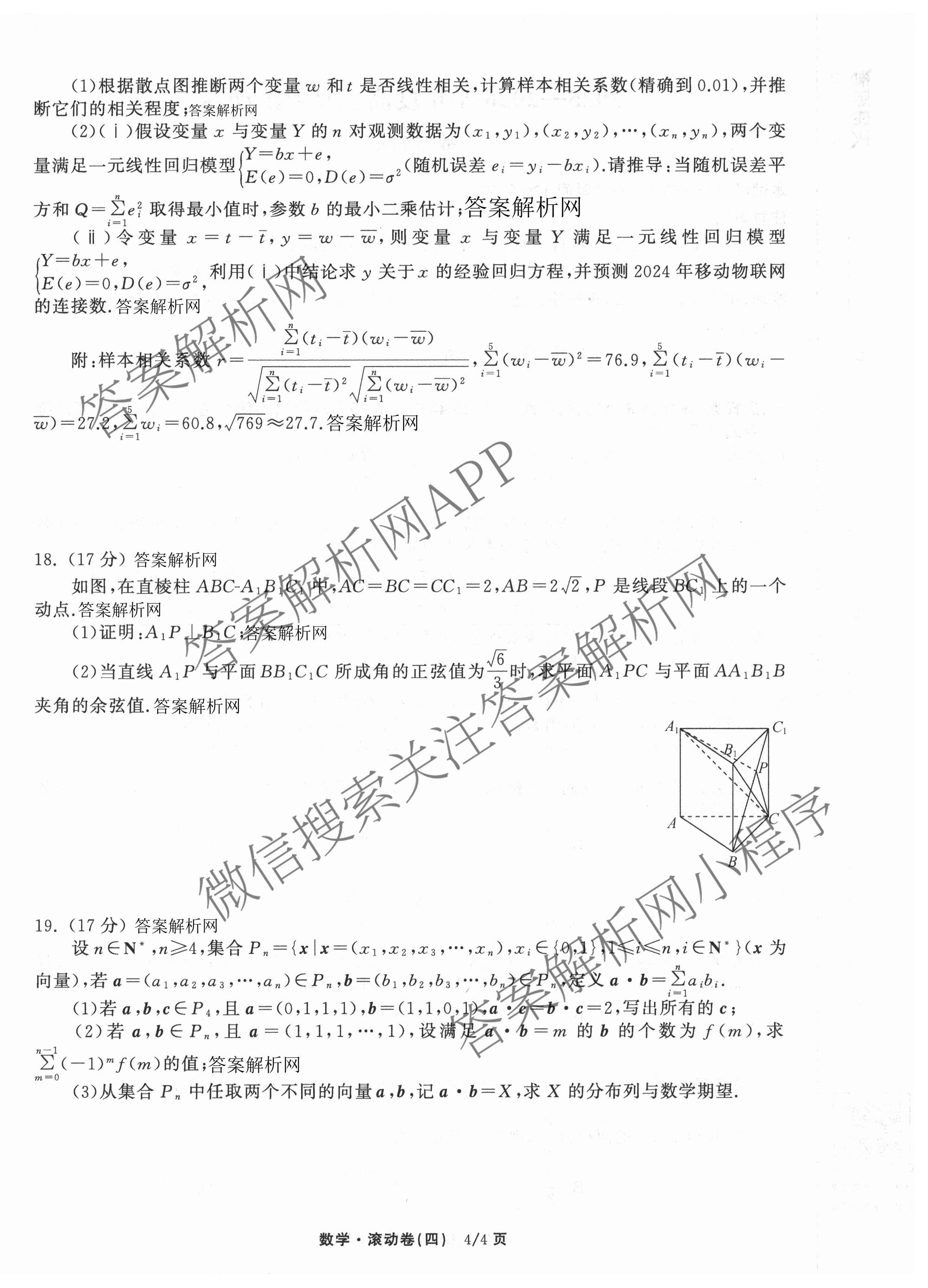 - [高三]衡中同卷2025~2026学年度复习滚动卷(四)4数学答案