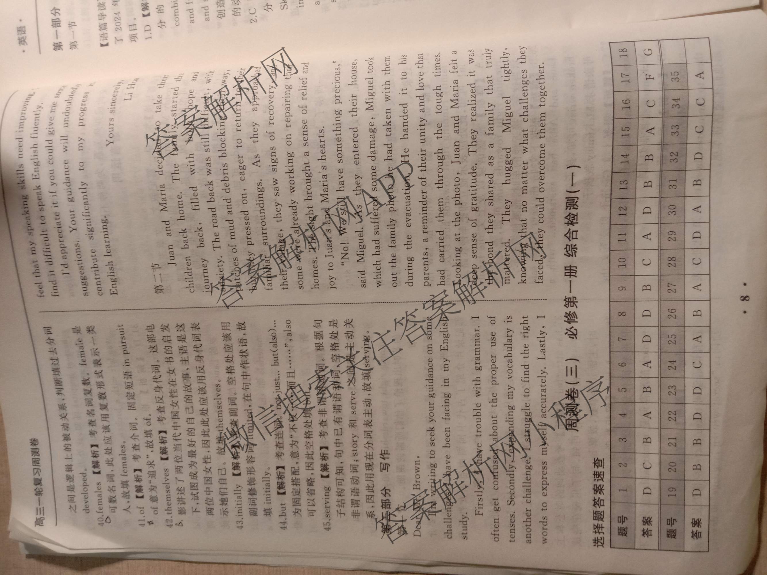 天舟高考衡中同卷2025-2026学年度高三一轮复习周测卷(二)2英语(大题量)答案