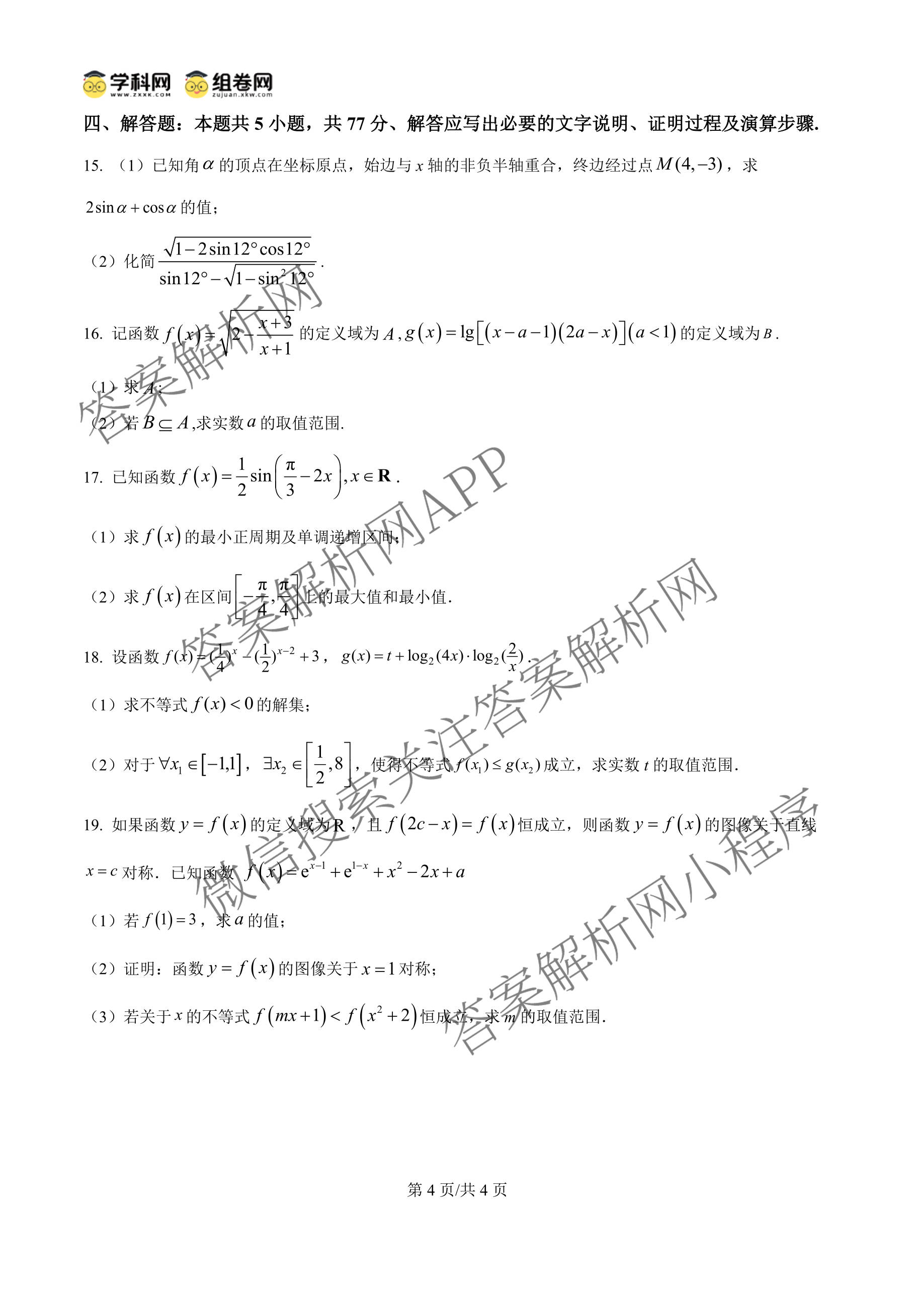 重庆南开中学高2028届高一练习(1.11)数学试题,目前分科卷答案网已经汇总了重庆南开中学高2028届高一练习(1.11)数学试题的各科答案和试卷,获取更多地方模拟答案解析,请在关注本站。