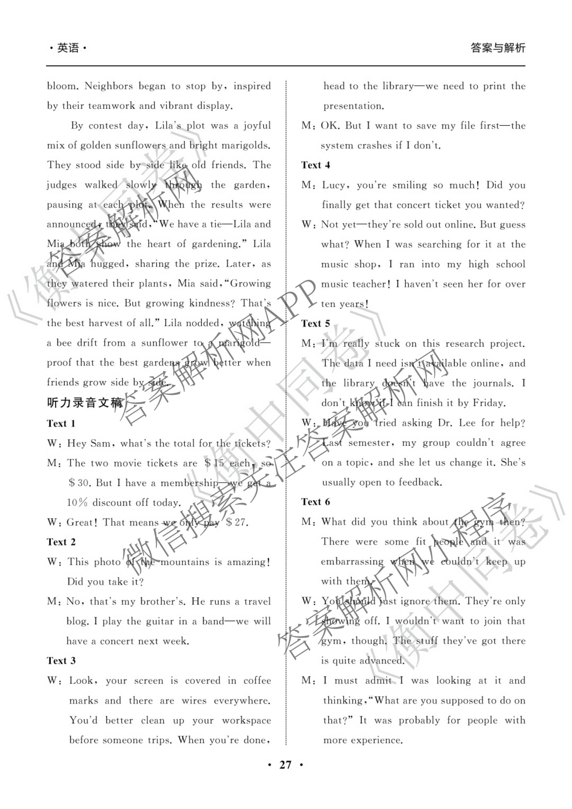 高三天舟高考(衡中同卷)·2026年普通高等学校招生全国统一考试模拟调研卷(四)4英语(无字母)答案