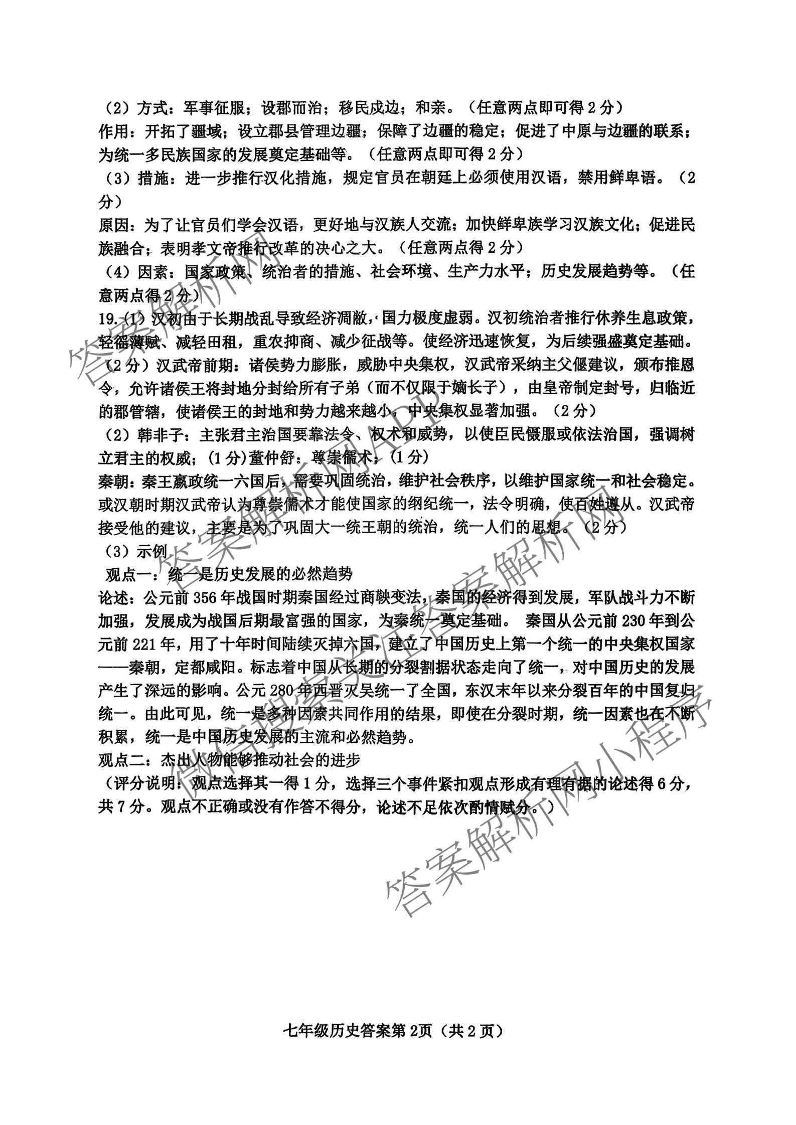 - 2025-2026太谷区学年度第一学期期末质量检测试题(卷)[七年级]历史答案