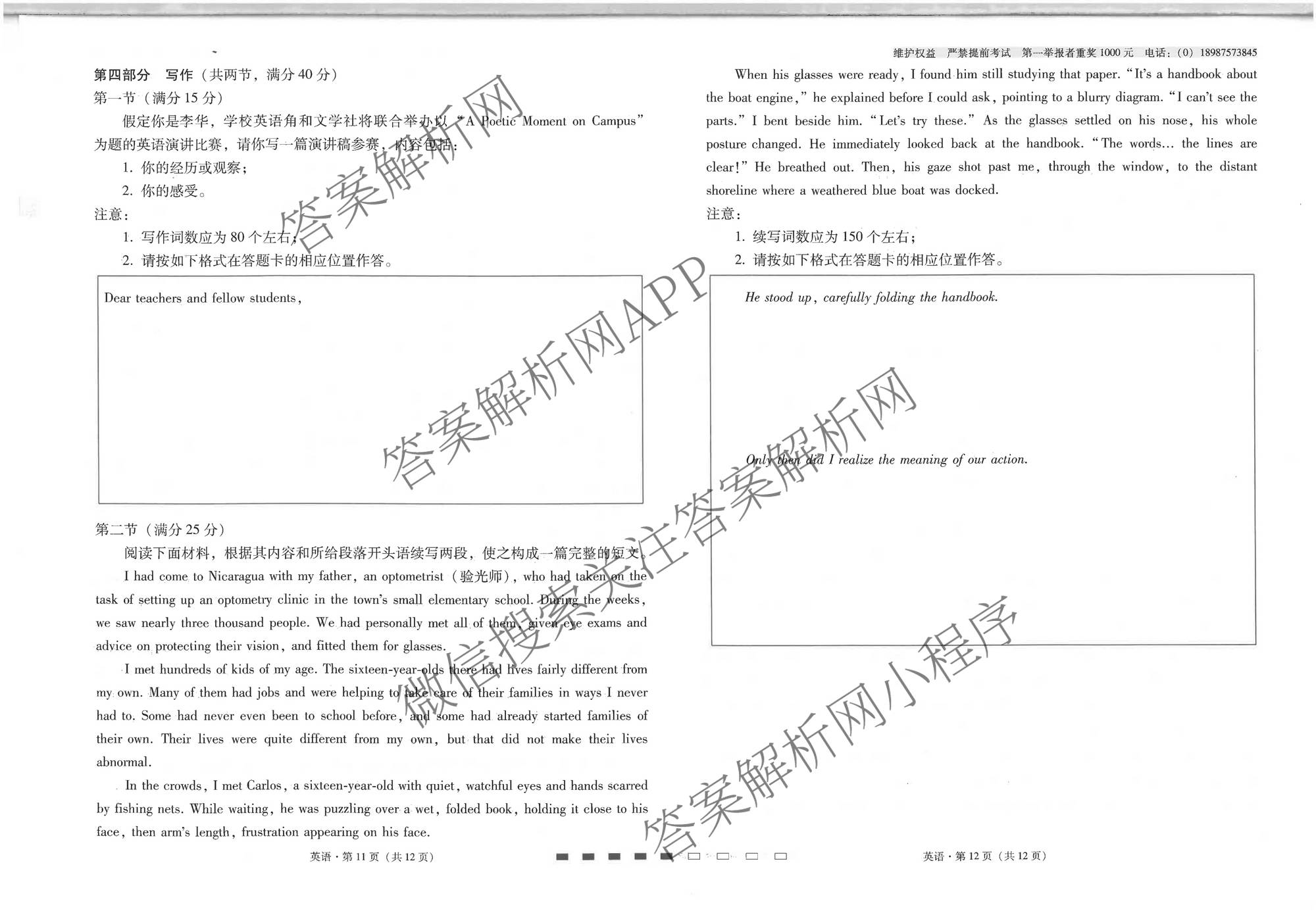 云南师大附中2026届高考适应性月考卷(六)(黑黑黑黑黑白白白)英语试题,目前分科卷答案网已经汇总了云南师大附中2026届高考适应性月考卷(六)(黑黑黑黑黑白白白)英语试题的各科答案和试卷,获取更多地方模拟答案解析,请在关注本站。