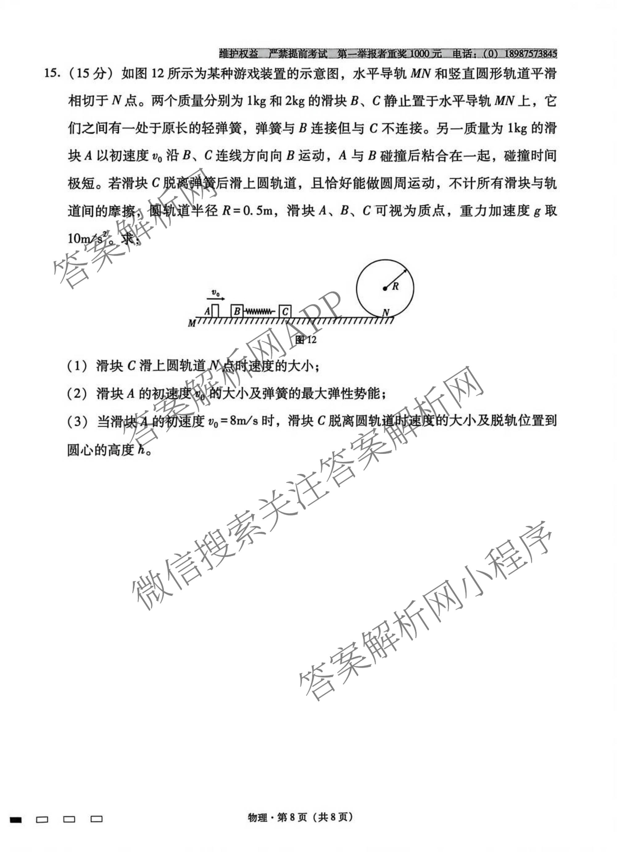 云南师大附中2026届高考适应性月考卷(六)(黑黑黑黑黑白白白)物理试题,目前分科卷答案网已经汇总了云南师大附中2026届高考适应性月考卷(六)(黑黑黑黑黑白白白)物理试题的各科答案和试卷,获取更多地方模拟答案解析,请在关注本站。