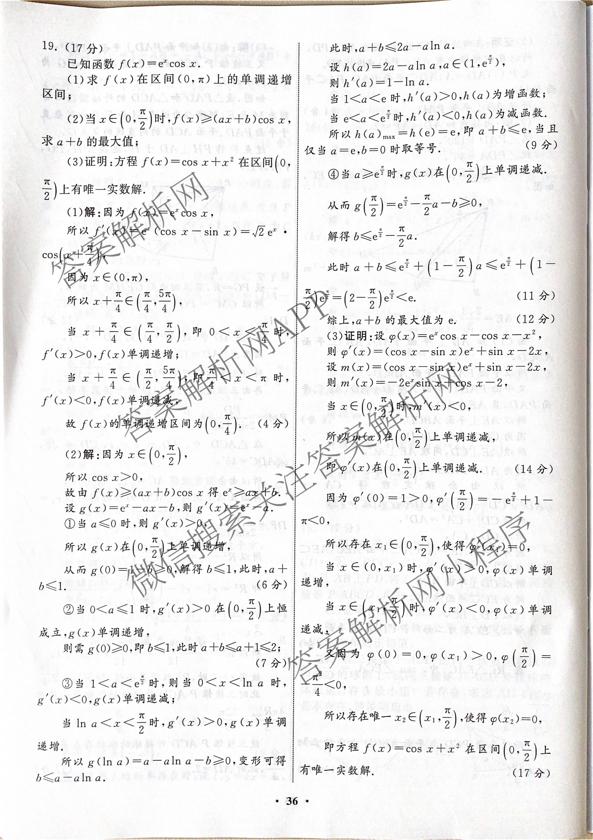 - 天舟高考[衡中同卷]2026年普通高等学校招生全国统一考试模拟调研卷(五)5数学(无字母)答案