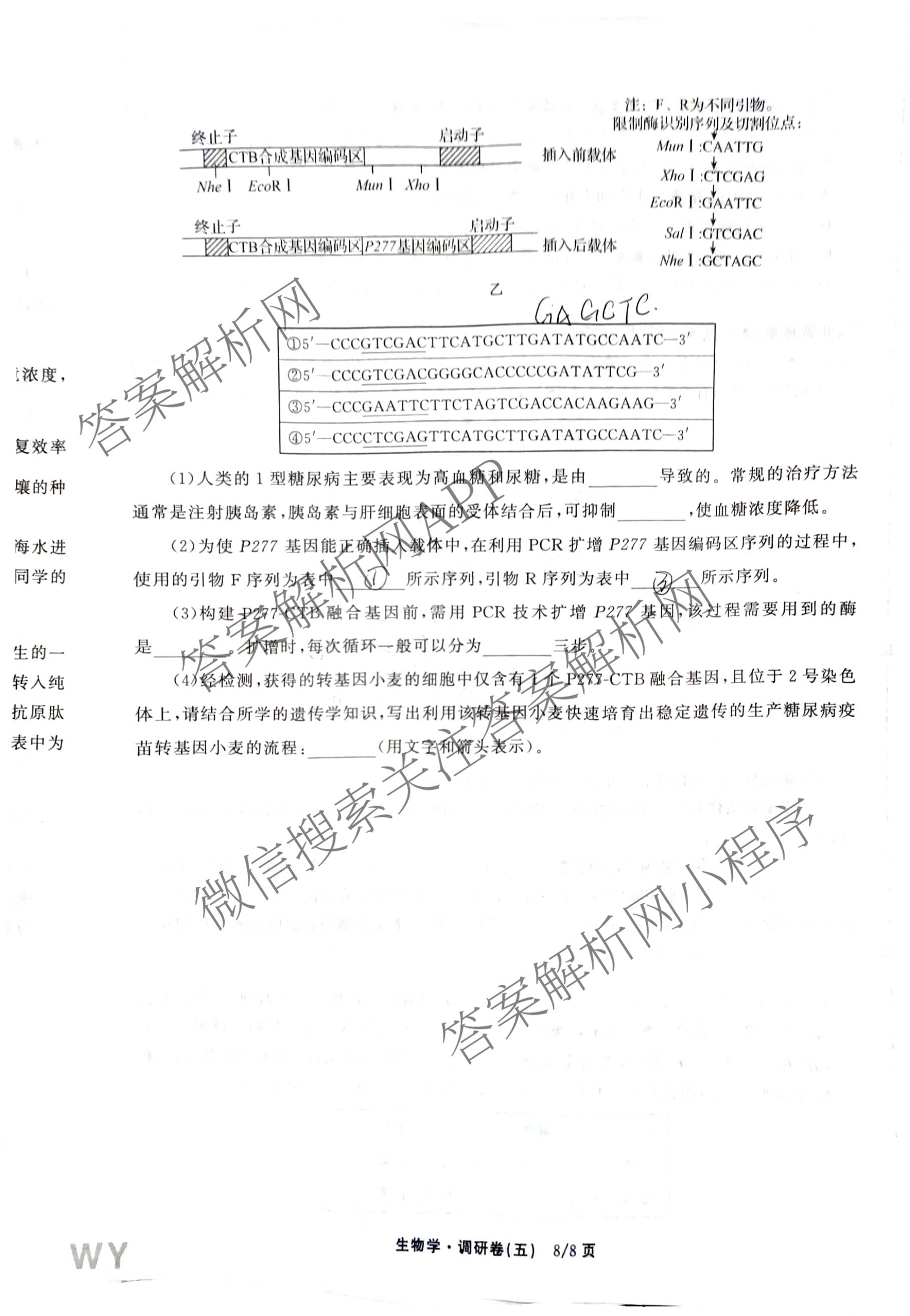- 天舟高考(衡中同卷)2026年普通高中学业水平选择性考试模拟调研卷(五)5生物(WY)试题