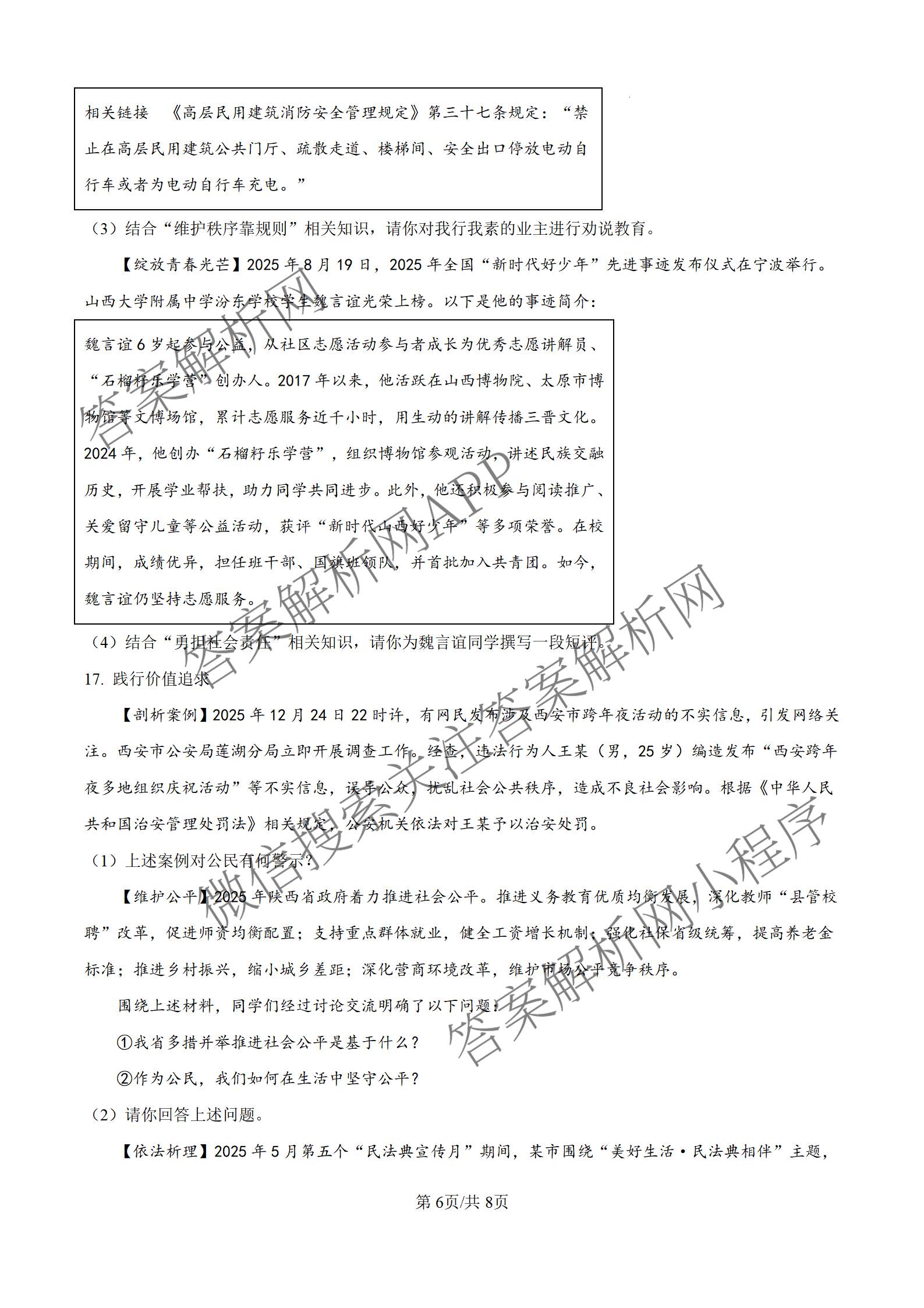 陕西省西安市部分学校2025-2026学年八年级上学期期末考试道德与法治试题,目前分科卷答案网已经汇总了陕西省西安市部分学校2025-2026学年八年级上学期期末考试道德与法治试题的各科答案和试卷,获取更多地方模拟答案解析,请在关注本站。