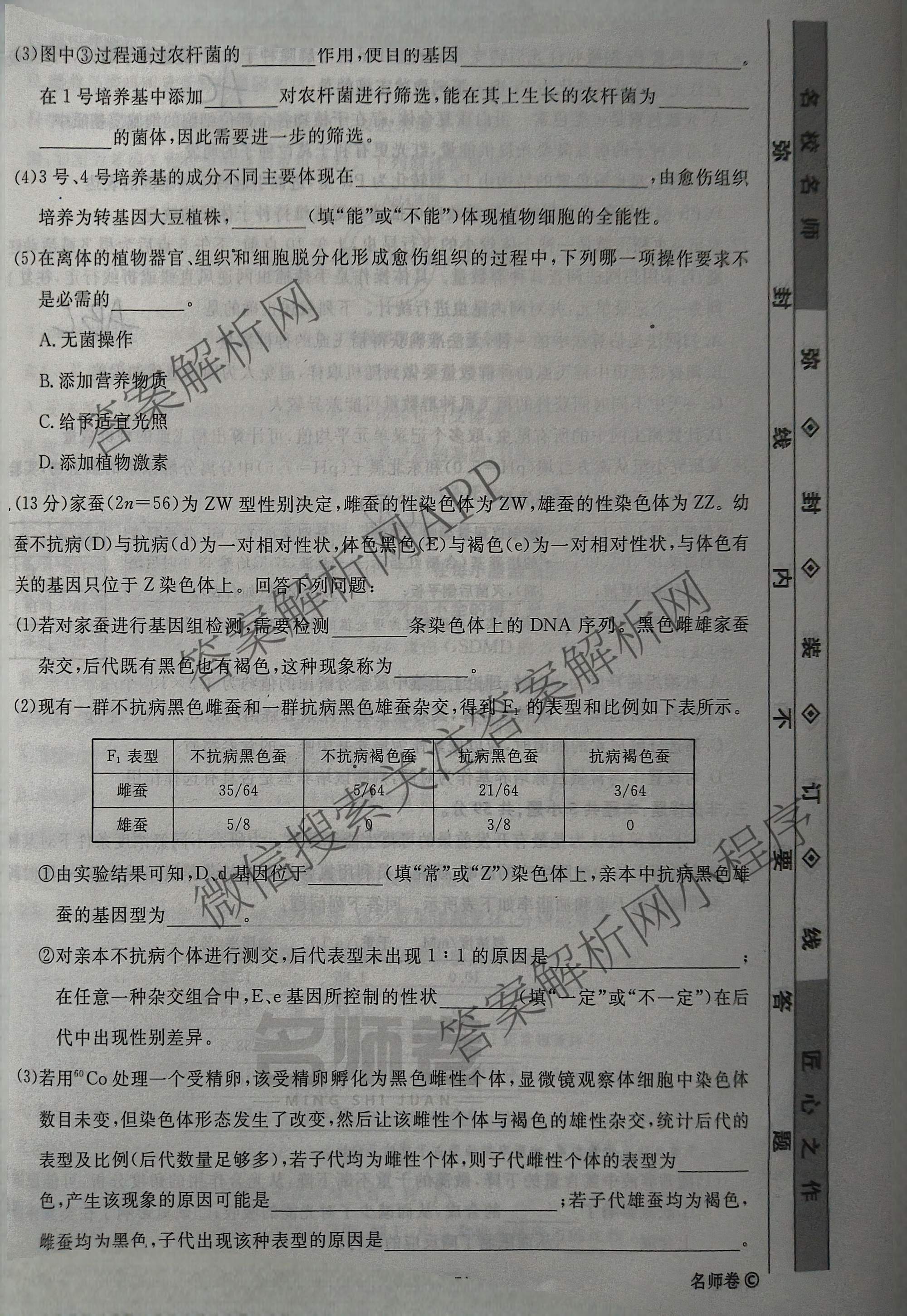 衡水名师卷·高考模拟调研卷 2026年普通高中学业水平选择性考试模拟(二)2生物(菱形点)试题,目前分科卷答案网已经汇总了衡水名师卷·高考模拟调研卷 2026年普通高中学业水平选择性考试模拟(二)2生物(菱形点)试题的各科答案和试卷,获取更多衡水名师卷答案解析,请在关注本站。