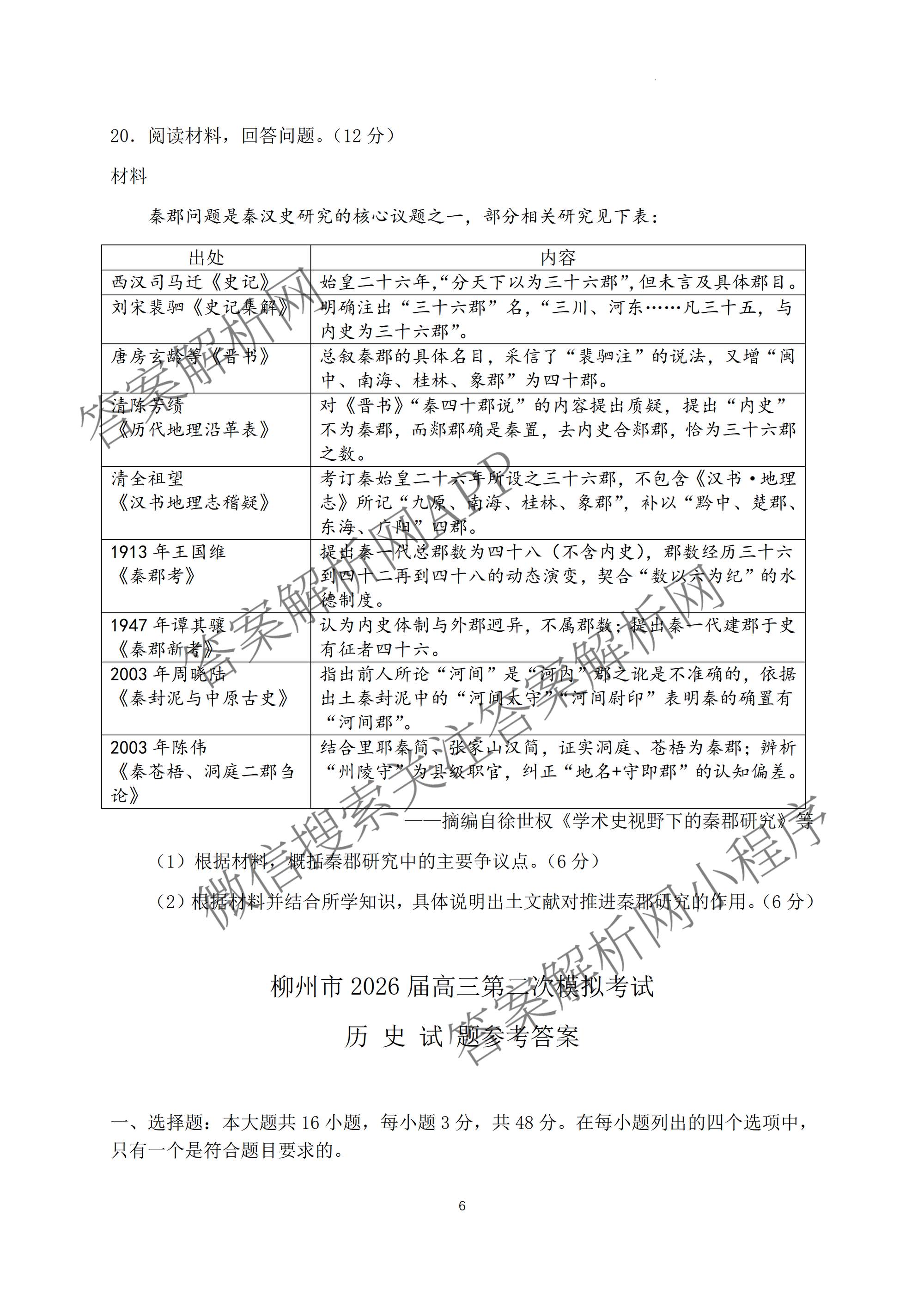 [柳州二模]柳州市2026届高三第二次模拟考试历史试题,目前分科卷答案网已经汇总了[柳州二模]柳州市2026届高三第二次模拟考试历史试题的各科答案和试卷,获取更多地方模拟答案解析,请在关注本站。