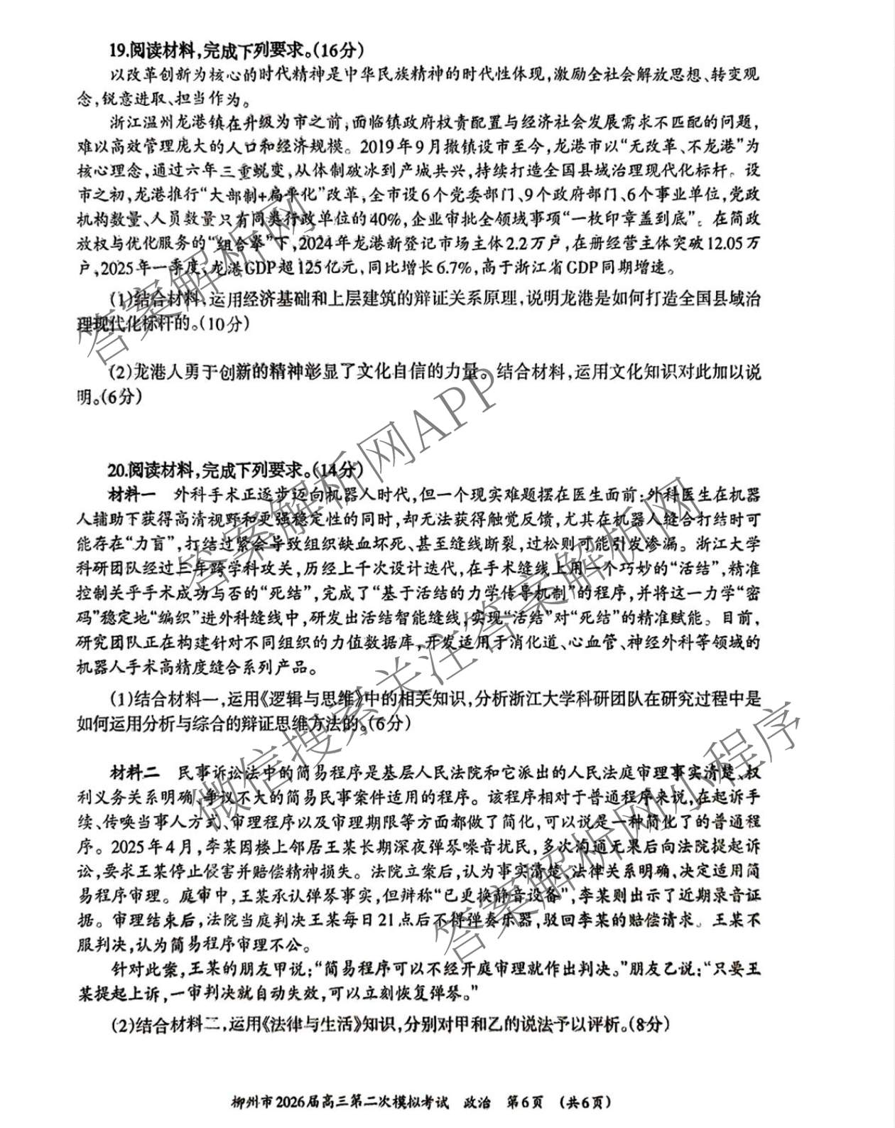 [柳州二模]柳州市2026届高三第二次模拟考试政治试题,目前分科卷答案网已经汇总了[柳州二模]柳州市2026届高三第二次模拟考试政治试题的各科答案和试卷,获取更多地方模拟答案解析,请在关注本站。