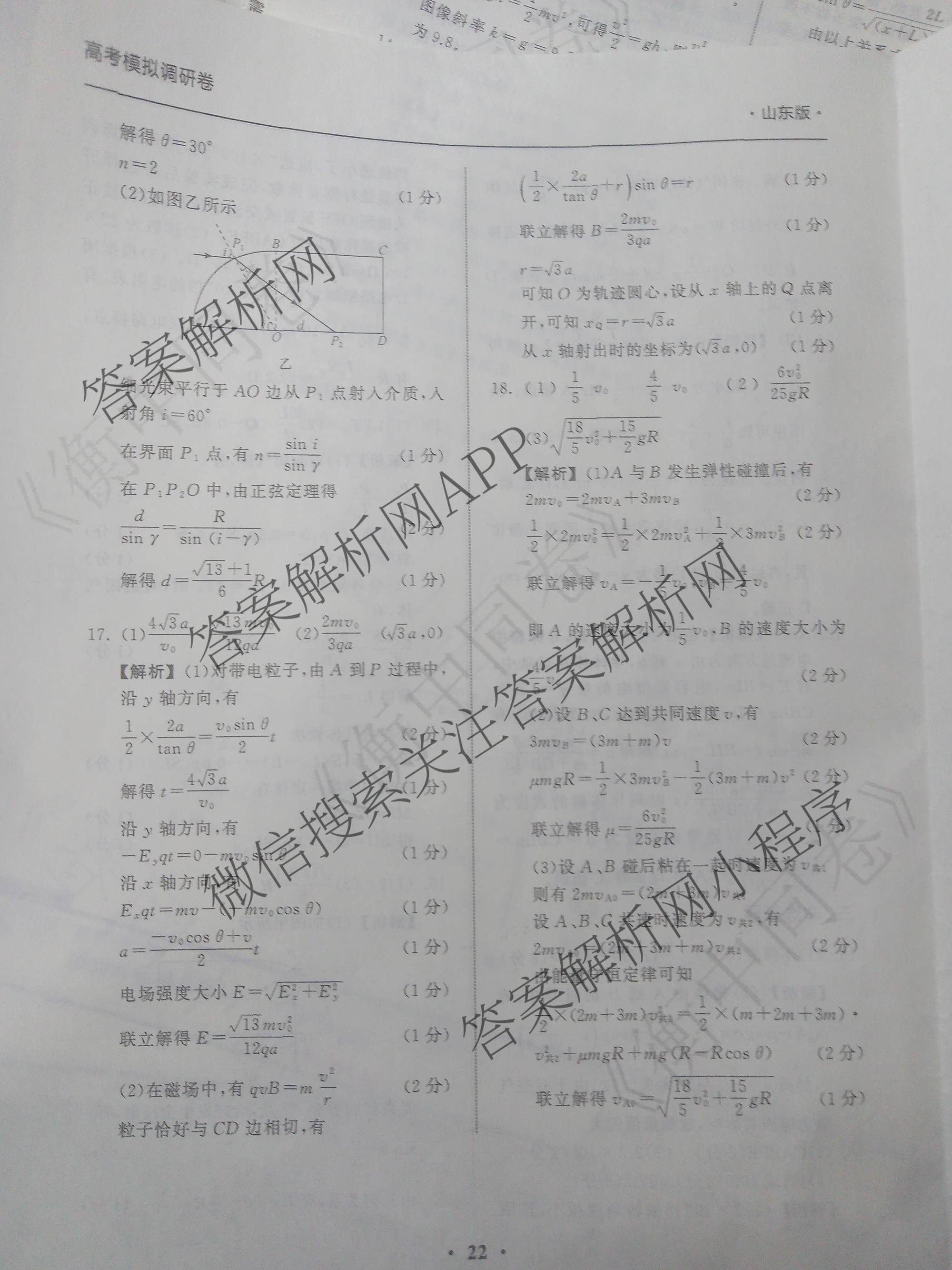 - (高三)天舟高考衡中同卷2026年普通高中学业水平选择性考试模拟调研卷(五)5物理(山东版)答案