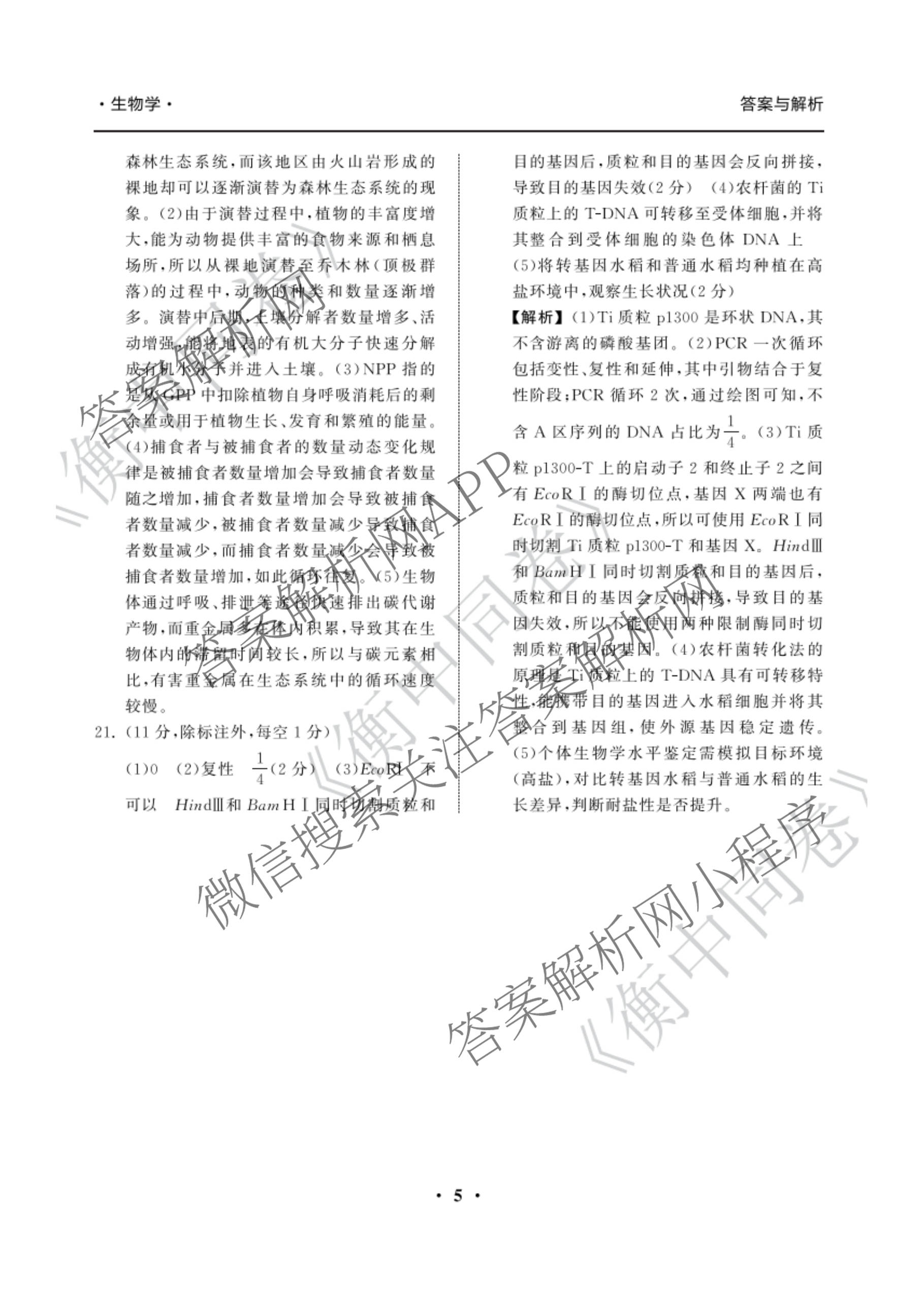 - 天舟高考[衡中同卷]2026年普通高中学业水平选择性考试模拟调研卷(一)1生物(HJ)答案