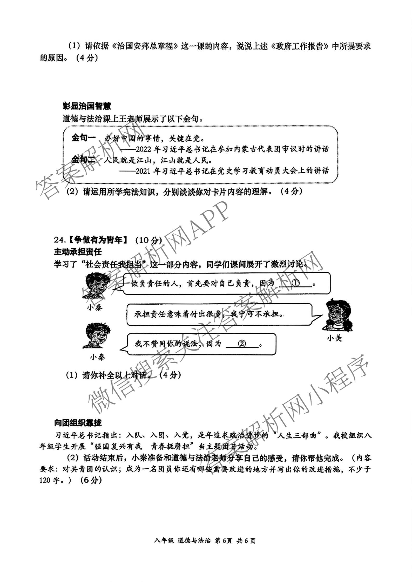 陕西省2025~2026学年度第一学期期末考试试题八年级道德与法治答案,目前分科卷答案网已经汇总了陕西省2025~2026学年度第一学期期末考试试题八年级道德与法治答案的各科答案和试卷,获取更多地方模拟答案解析,请在关注本站。