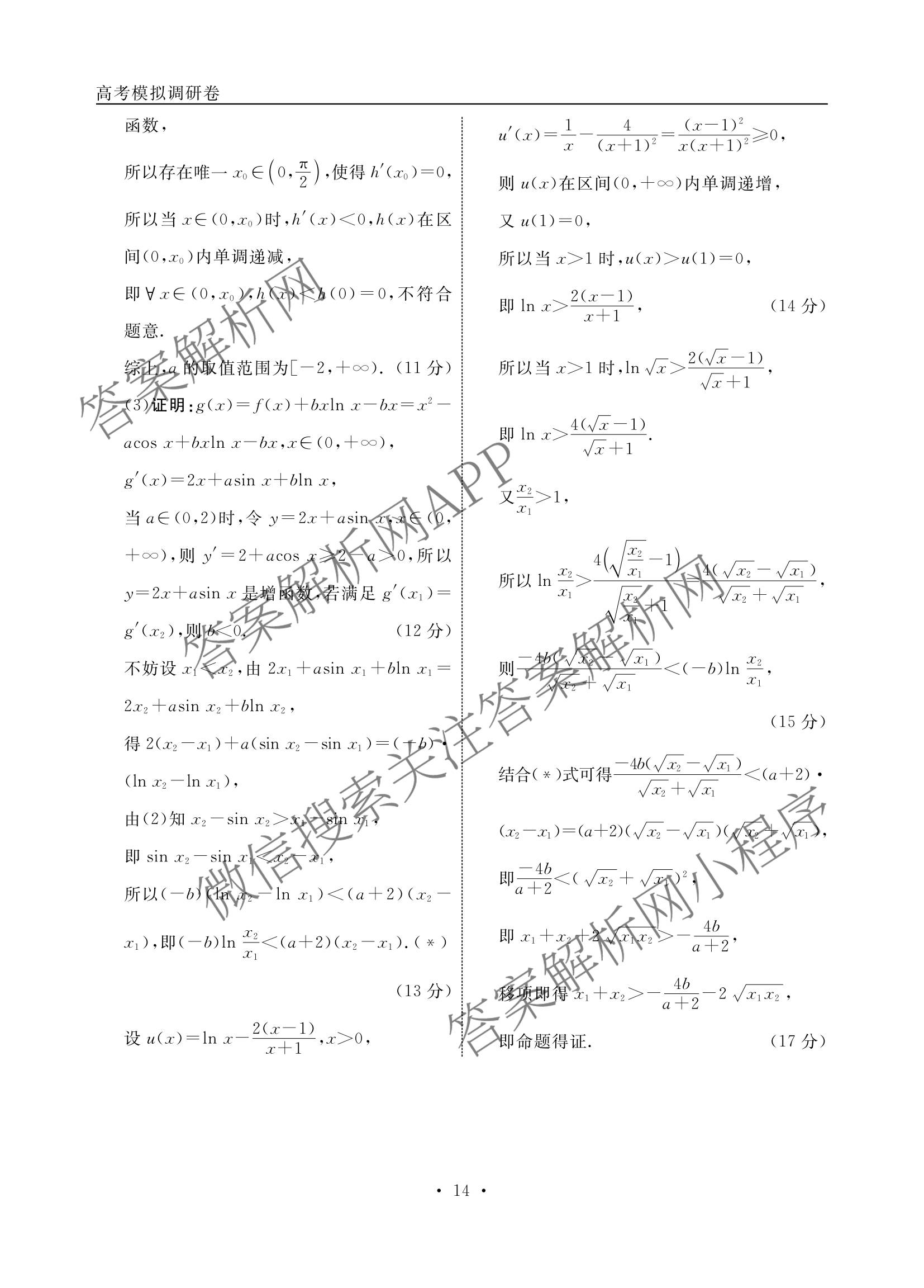 - [高三][衡水名师卷]高考模拟调研卷 2026年普通高等学校招生全国统一考试模拟试题(二)2数学(空心菱形)答案
