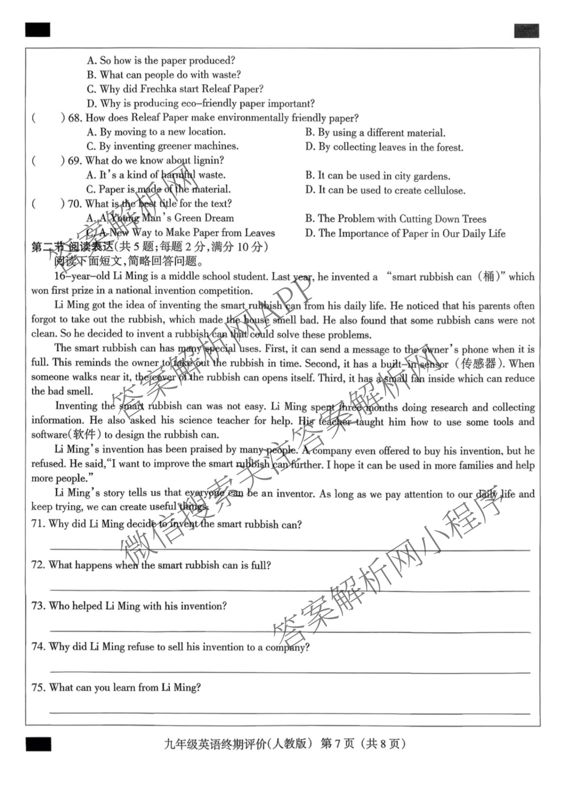 河北省2025-2026学年第一学期九年级学业水平终期评价英语(人教版)试题,目前分科卷答案网已经汇总了河北省2025-2026学年第一学期九年级学业水平终期评价英语(人教版)试题的各科答案和试卷,获取更多地方模拟答案解析,请在关注本站。