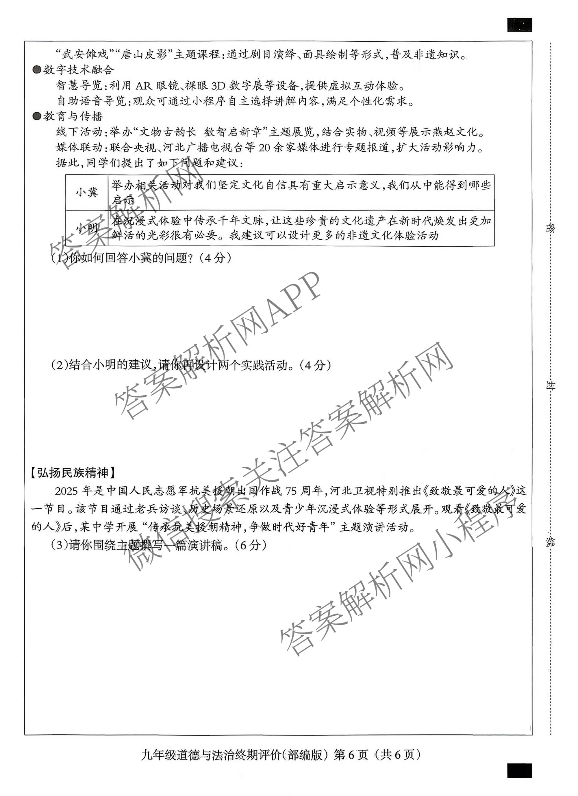 - 2025-2026[九年级]河北省学年第一学期学业水平终期评价道德与法治(部编版)答案
