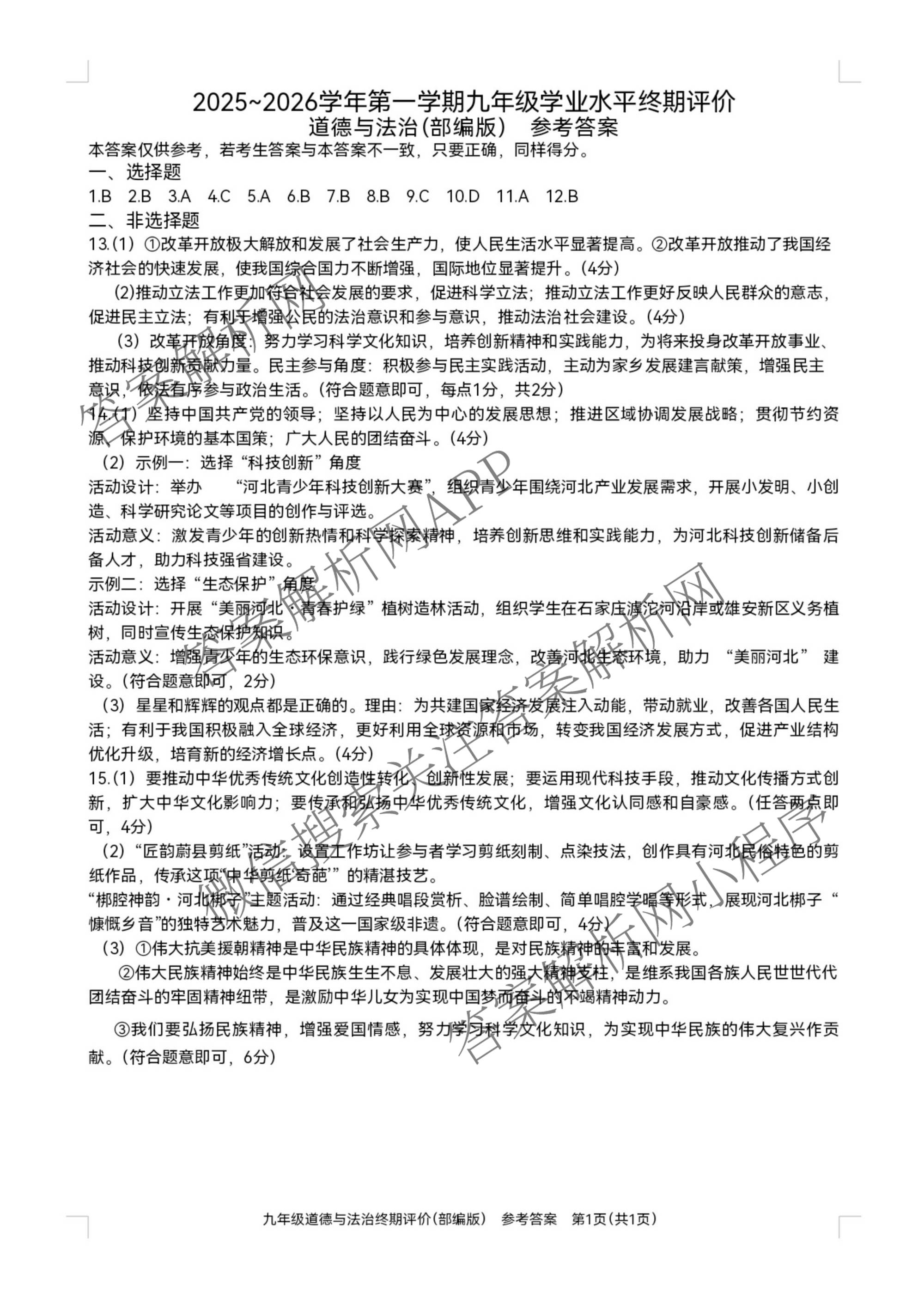 - 2025-2026[九年级]河北省学年第一学期学业水平终期评价道德与法治(部编版)答案