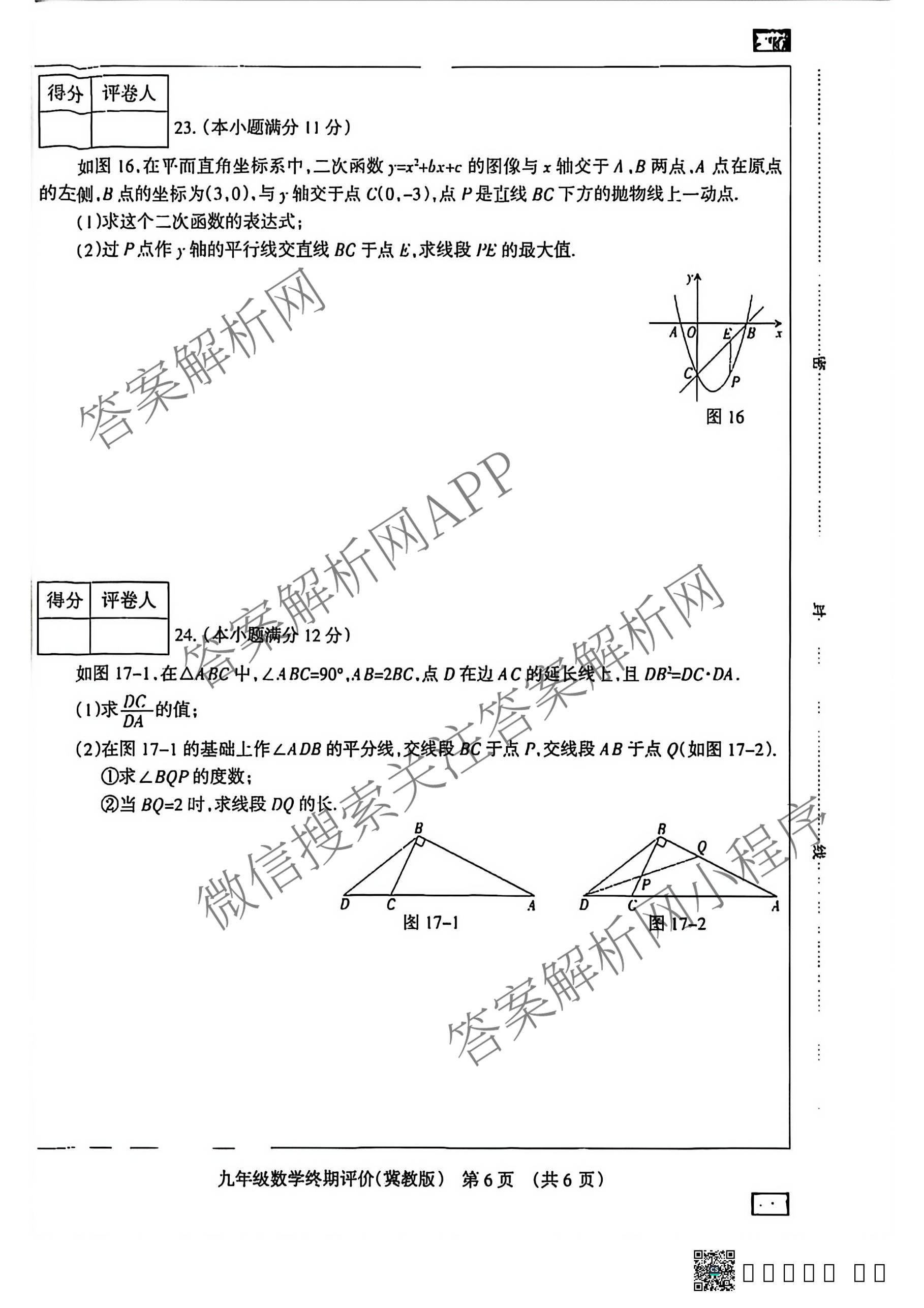 河北省2025-2026学年第一学期九年级学业水平终期评价数学(冀教版)试题,目前分科卷答案网已经汇总了河北省2025-2026学年第一学期九年级学业水平终期评价数学(冀教版)试题的各科答案和试卷,获取更多地方模拟答案解析,请在关注本站。
