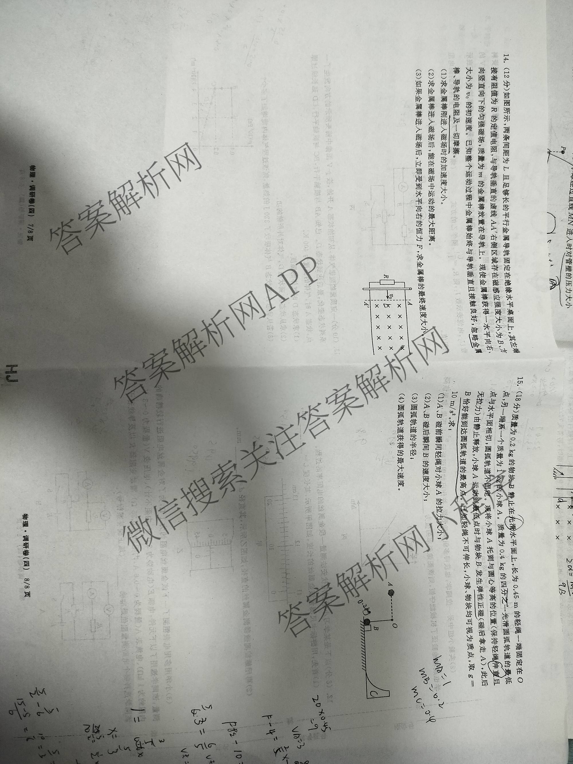 - 天舟高考(衡中同卷)2026年普通高中学业水平选择性考试模拟调研卷(四)4物理(安徽版)答案