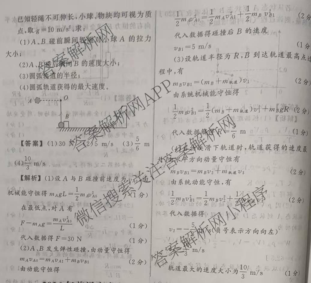 - [高三]天舟高考[衡中同卷]2026年普通高中学业水平选择性考试模拟调研卷(四)4物理(XB专版)答案