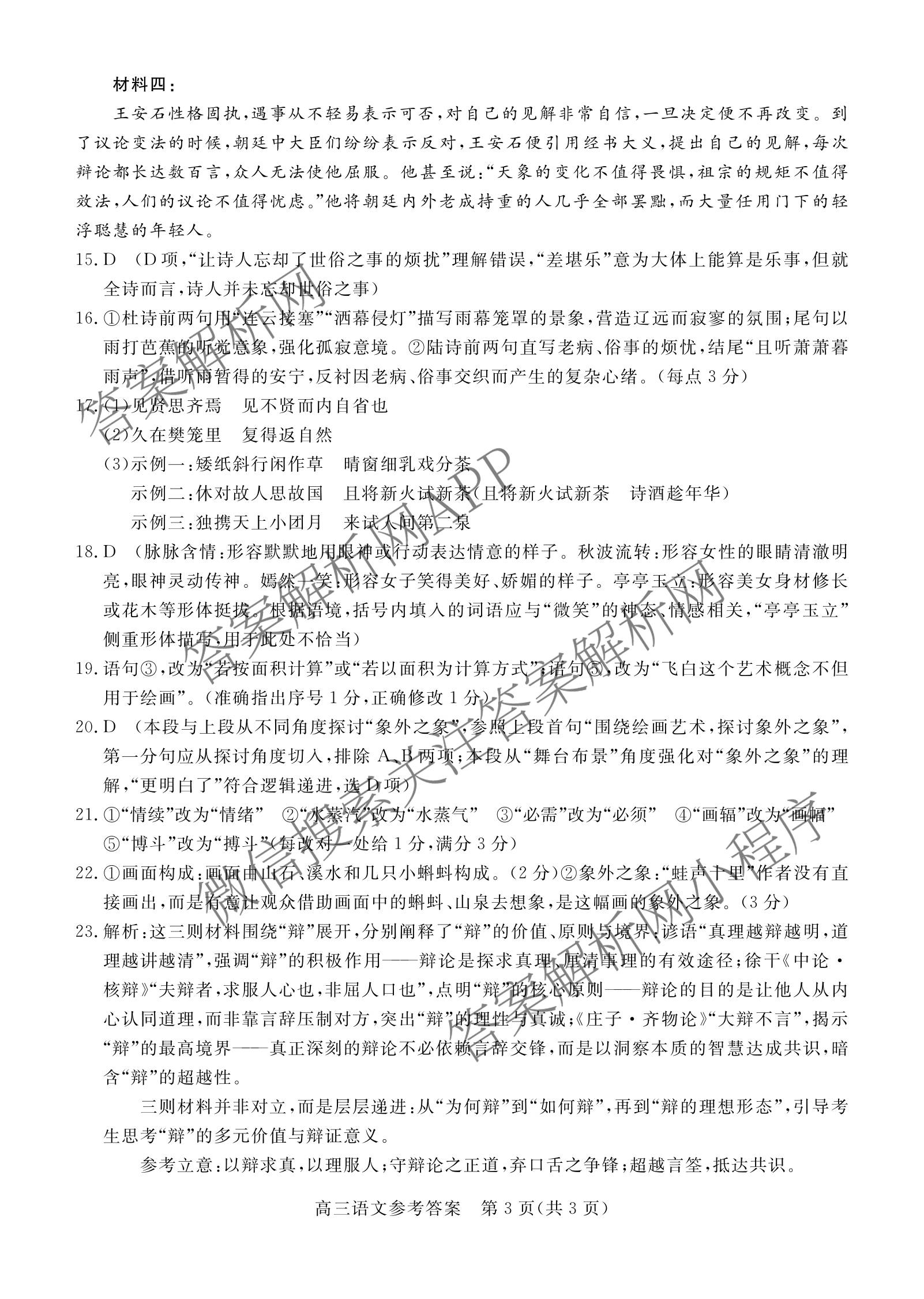 2025~2026[高三]河北省雄安新区学年度年级第一学期期末考试语文答案