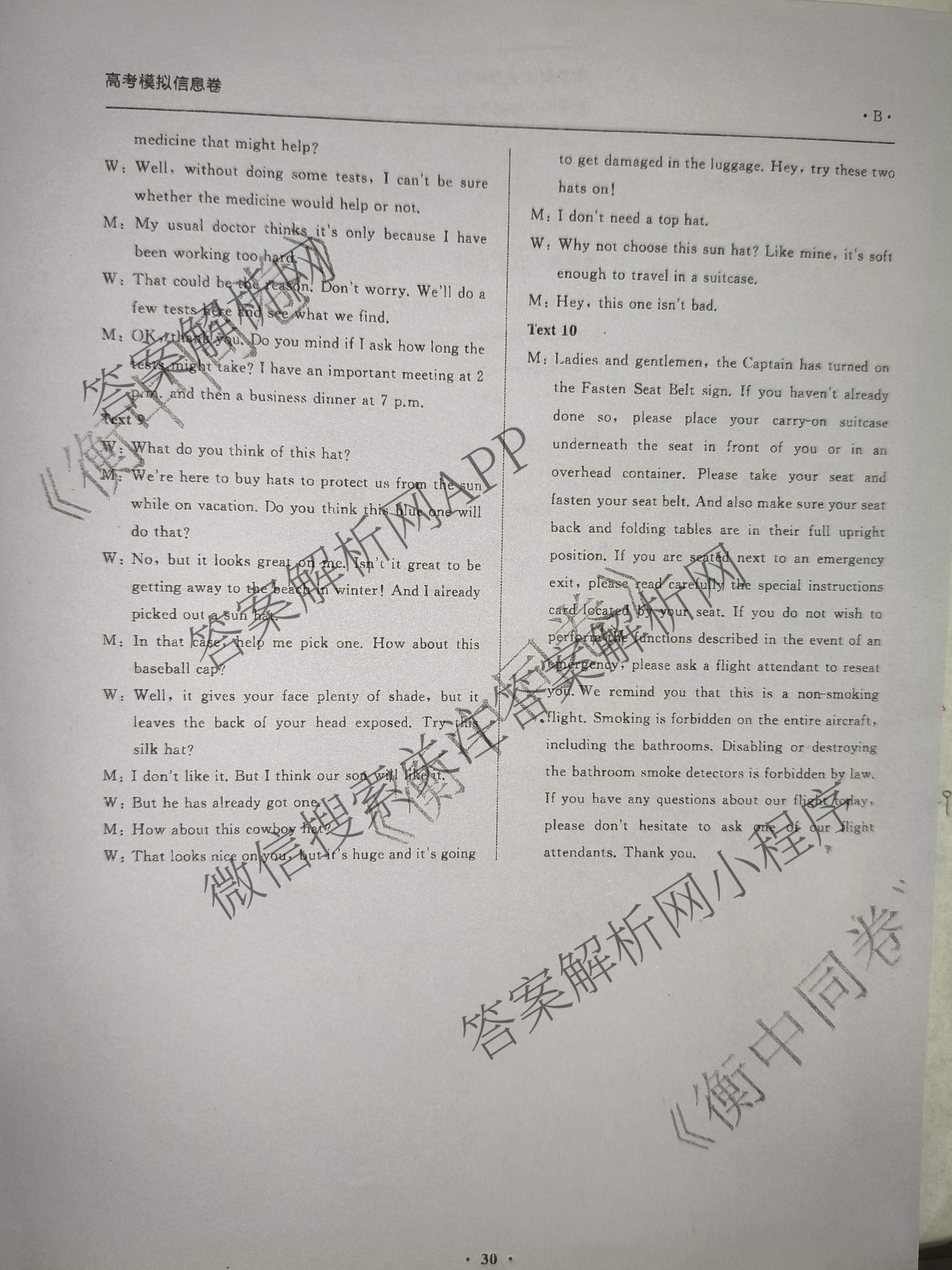 天舟高考衡中同卷·2026年普通高等学校招生全国统一考试模拟信息卷(六)6英语(B)答案,目前分科卷答案网已经汇总了天舟高考衡中同卷·2026年普通高等学校招生全国统一考试模拟信息卷(六)6英语(B)答案的各科答案和试卷,获取更多衡中同卷答案解析,请在关注本站。