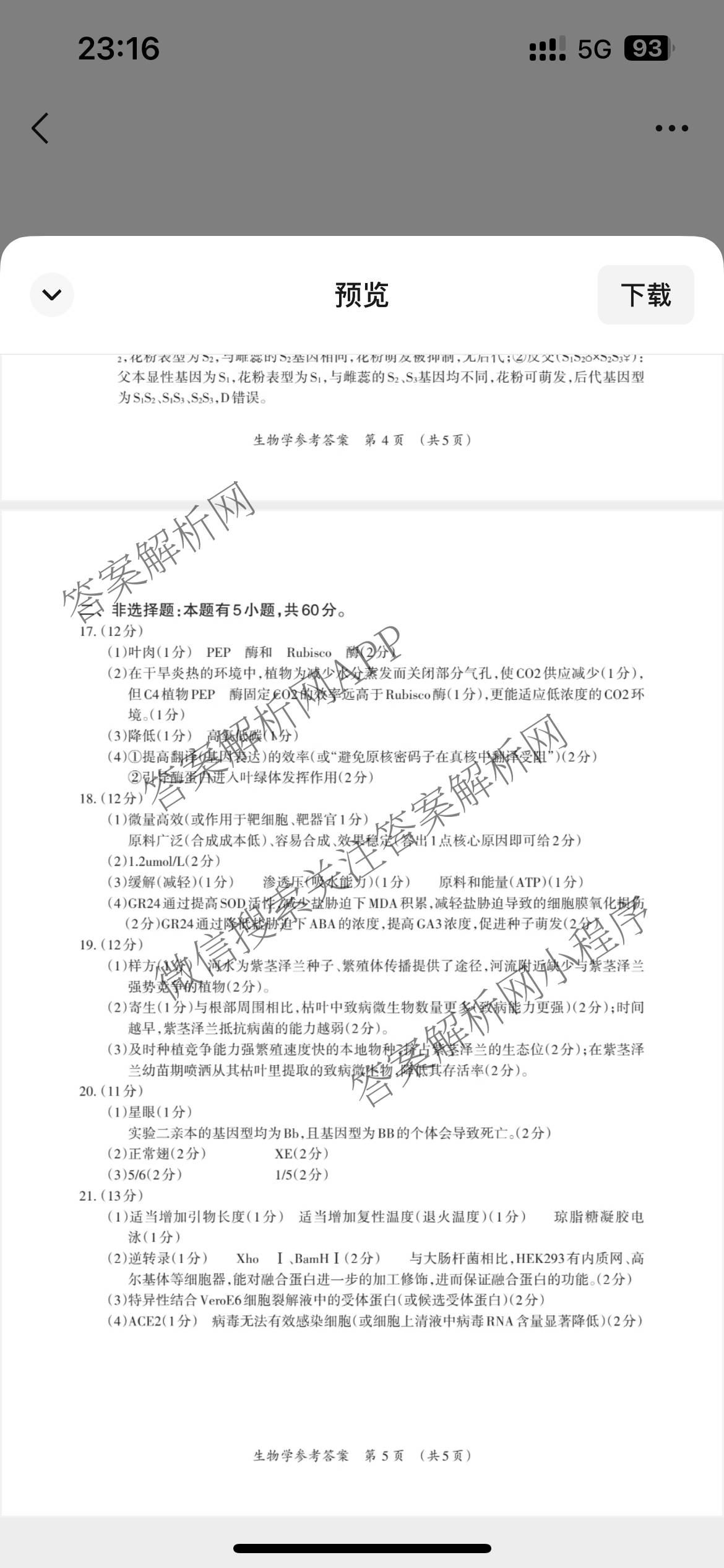 广西2025-2026学年上学期桂林市高三年级期末质量检测(2026年1月)生物答案,目前分科卷答案网已经汇总了广西2025-2026学年上学期桂林市高三年级期末质量检测(2026年1月)生物答案的各科答案和试卷,获取更多地方模拟答案解析,请在关注本站。