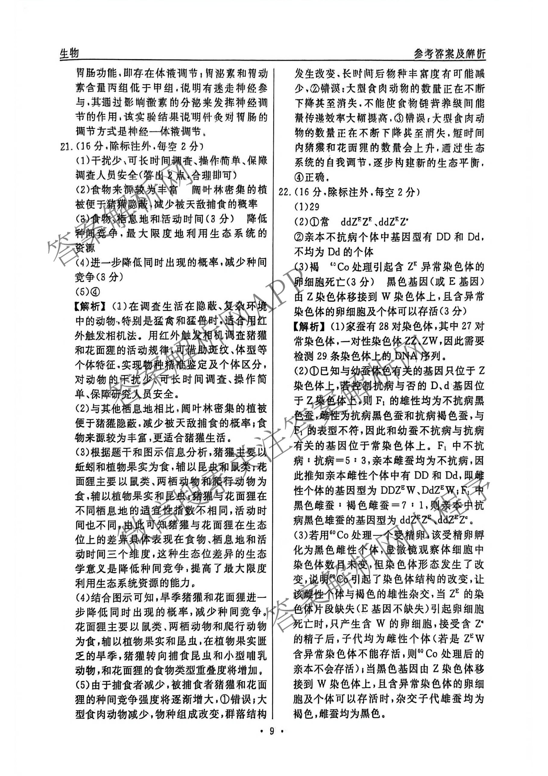 - [高三][衡水名师卷]·高考模拟调研卷 2026年普通高中学业水平选择性考试模拟(二)2生物(※)答案