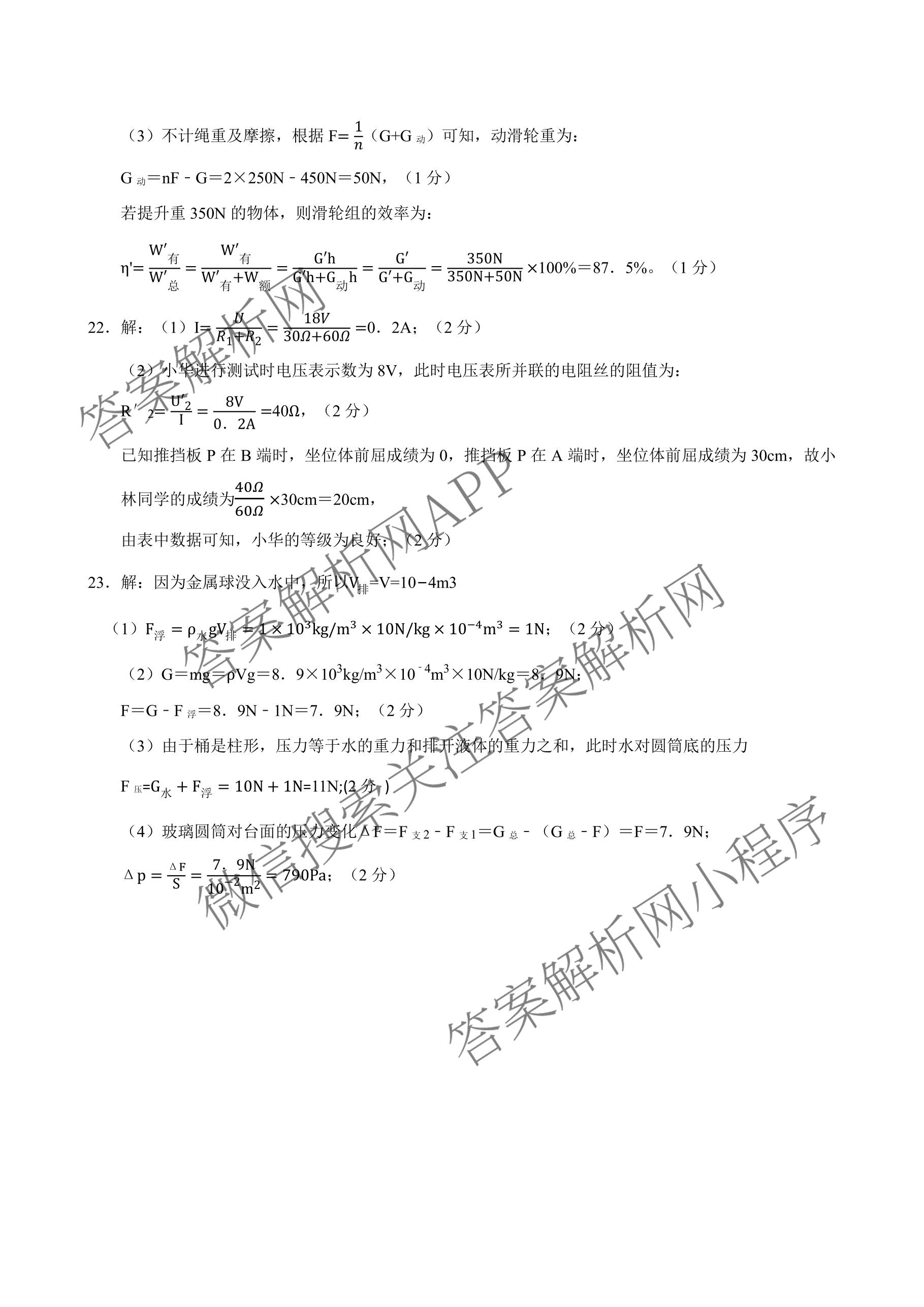 安徽省"C20"教育联盟2026年[九年级]第一次学业水平检测物理答案