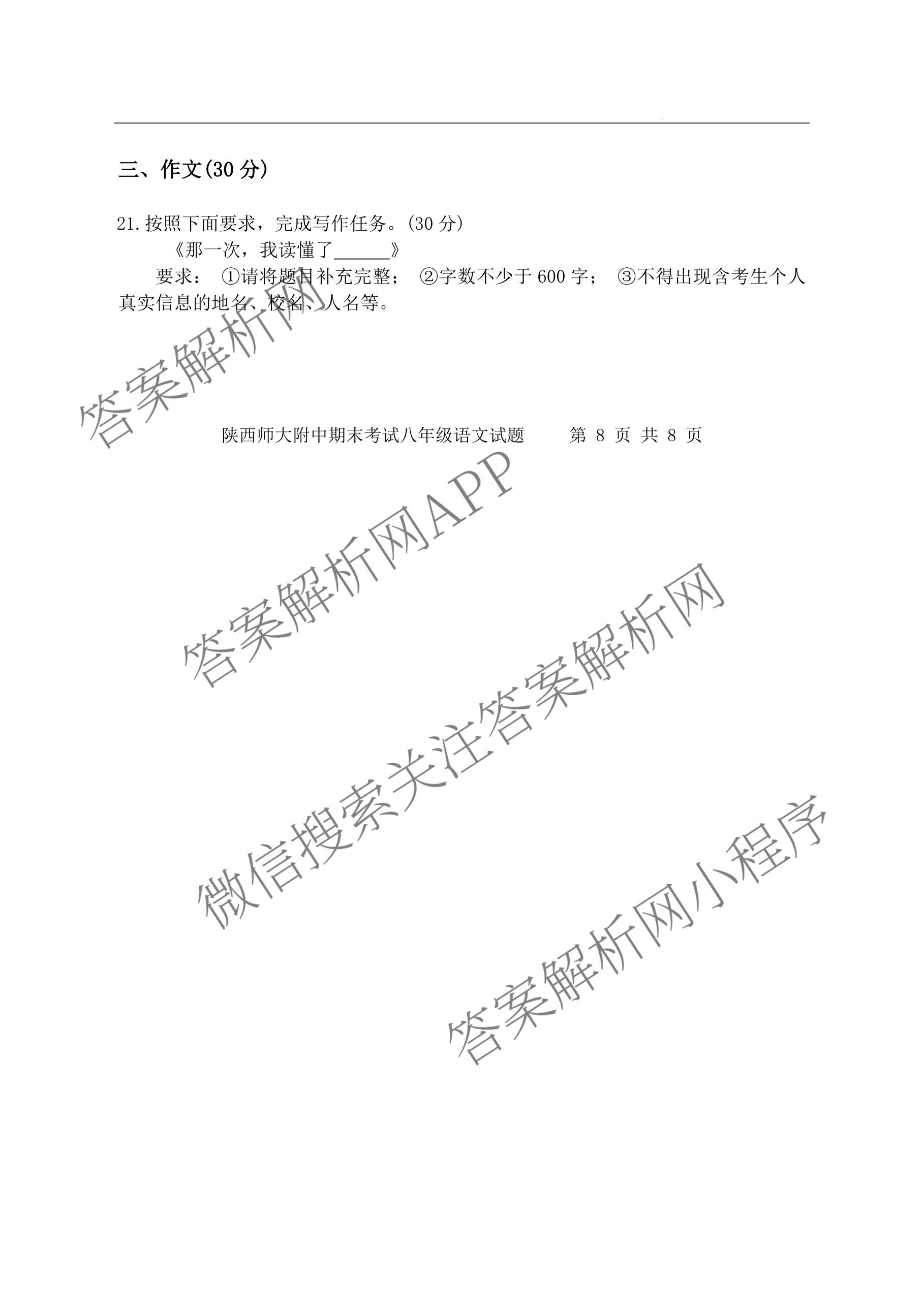 陕西师大附中2025-2026学年度第一学期期末考试八年级语文试题,目前分科卷答案网已经汇总了陕西师大附中2025-2026学年度第一学期期末考试八年级语文试题的各科答案和试卷,获取更多地方模拟答案解析,请在关注本站。