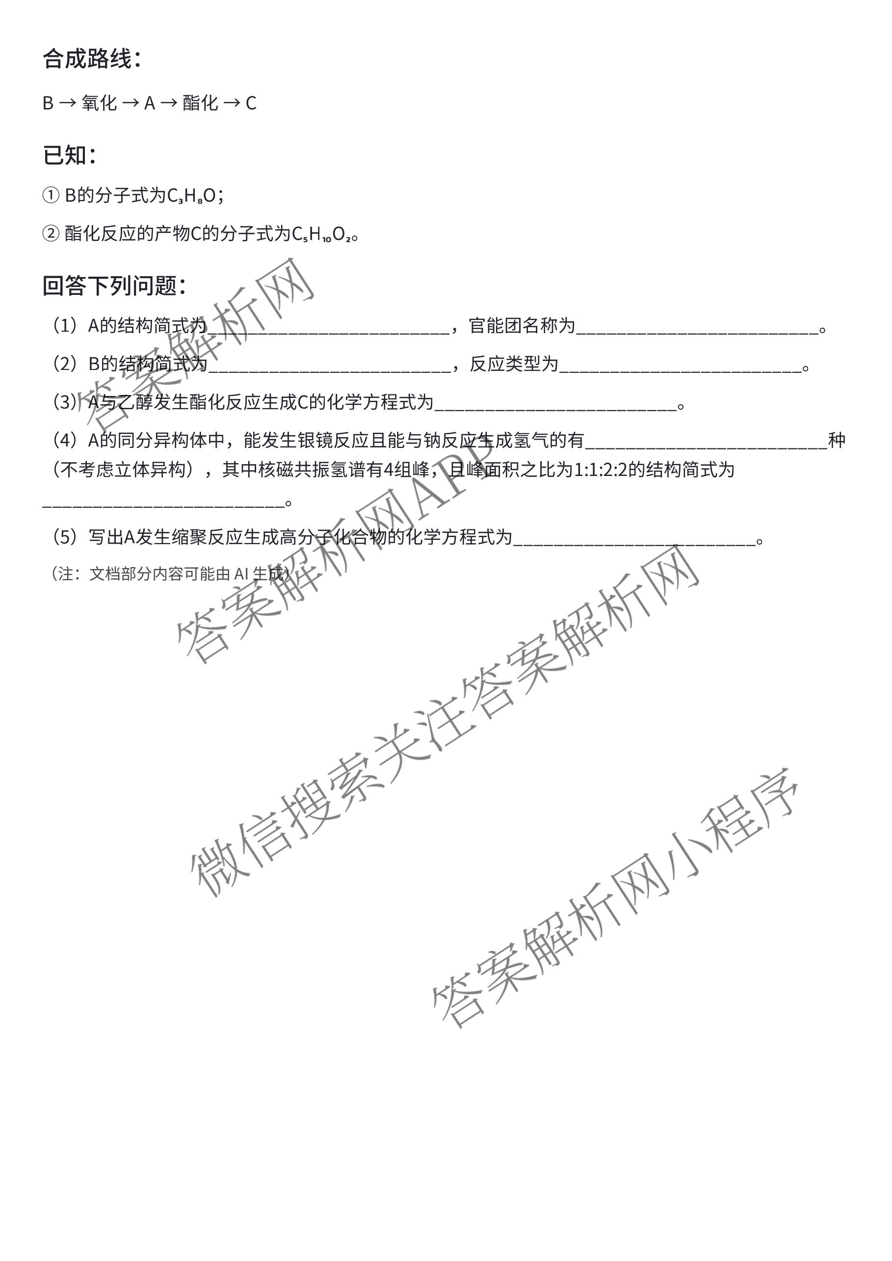 湖南省2026届衡阳市八中高三年级高考适应性考试(一)化学试题,目前分科卷答案网已经汇总了湖南省2026届衡阳市八中高三年级高考适应性考试(一)化学试题的各科答案和试卷,获取更多地方模拟答案解析,请在关注本站。