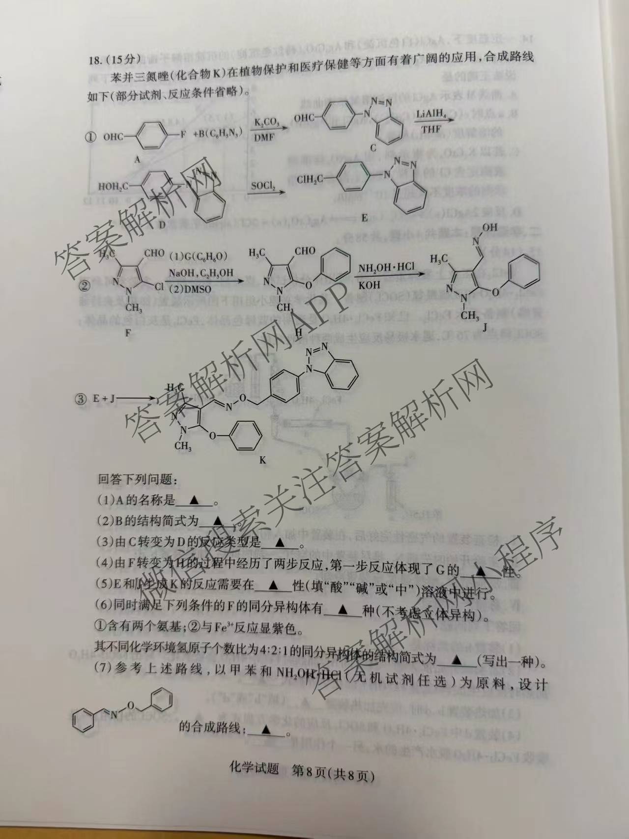 山西运城市2025-2026学年第一学期期末调研测试高三(2026.02)化学试题,目前分科卷答案网已经汇总了山西运城市2025-2026学年第一学期期末调研测试高三(2026.02)化学试题的各科答案和试卷,获取更多地方模拟答案解析,请在关注本站。