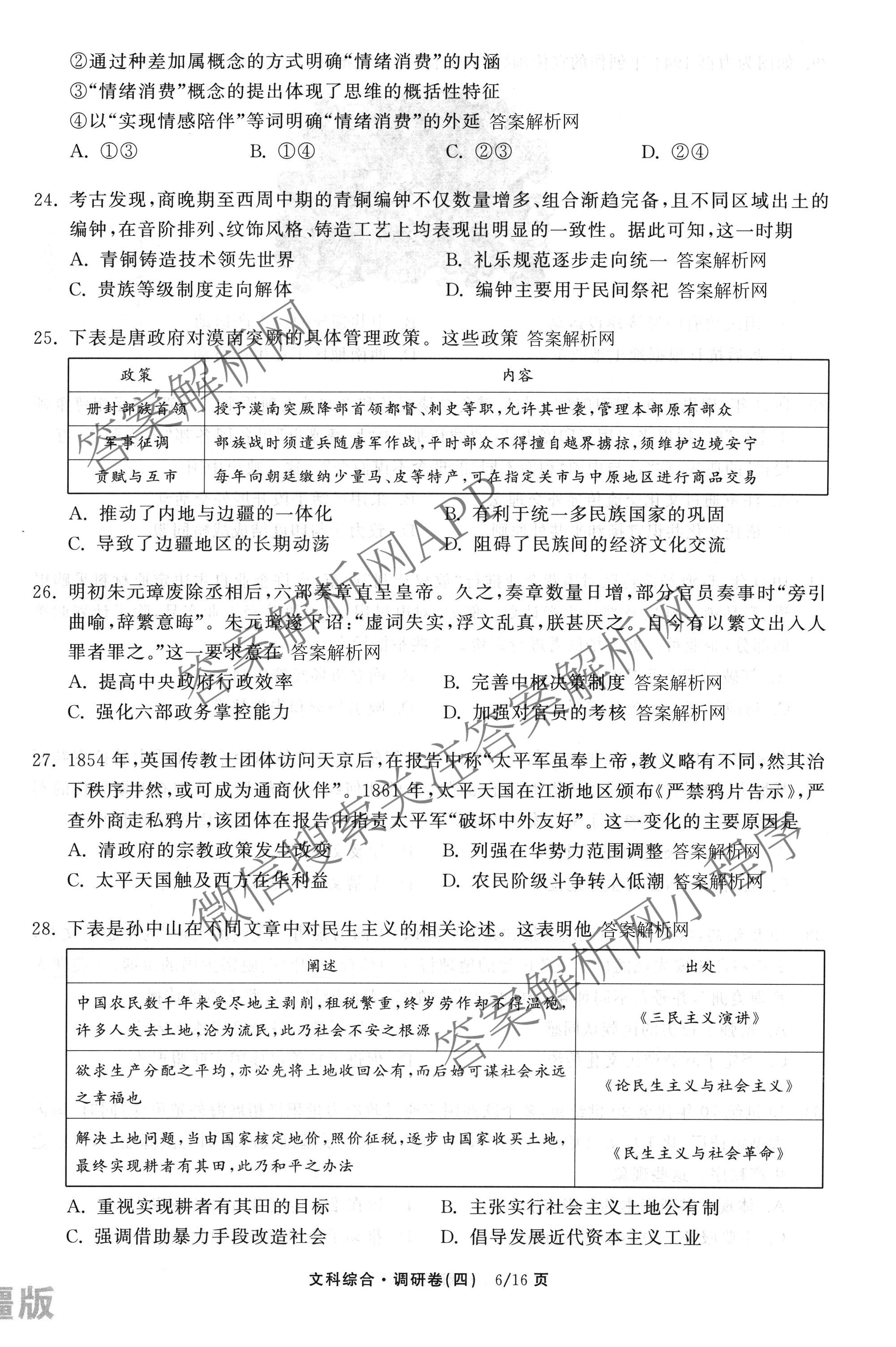 - [高三]天舟高考[衡中同卷]·2026年普通高等学校招生全国统一考试模拟调研卷(四)4文综试题