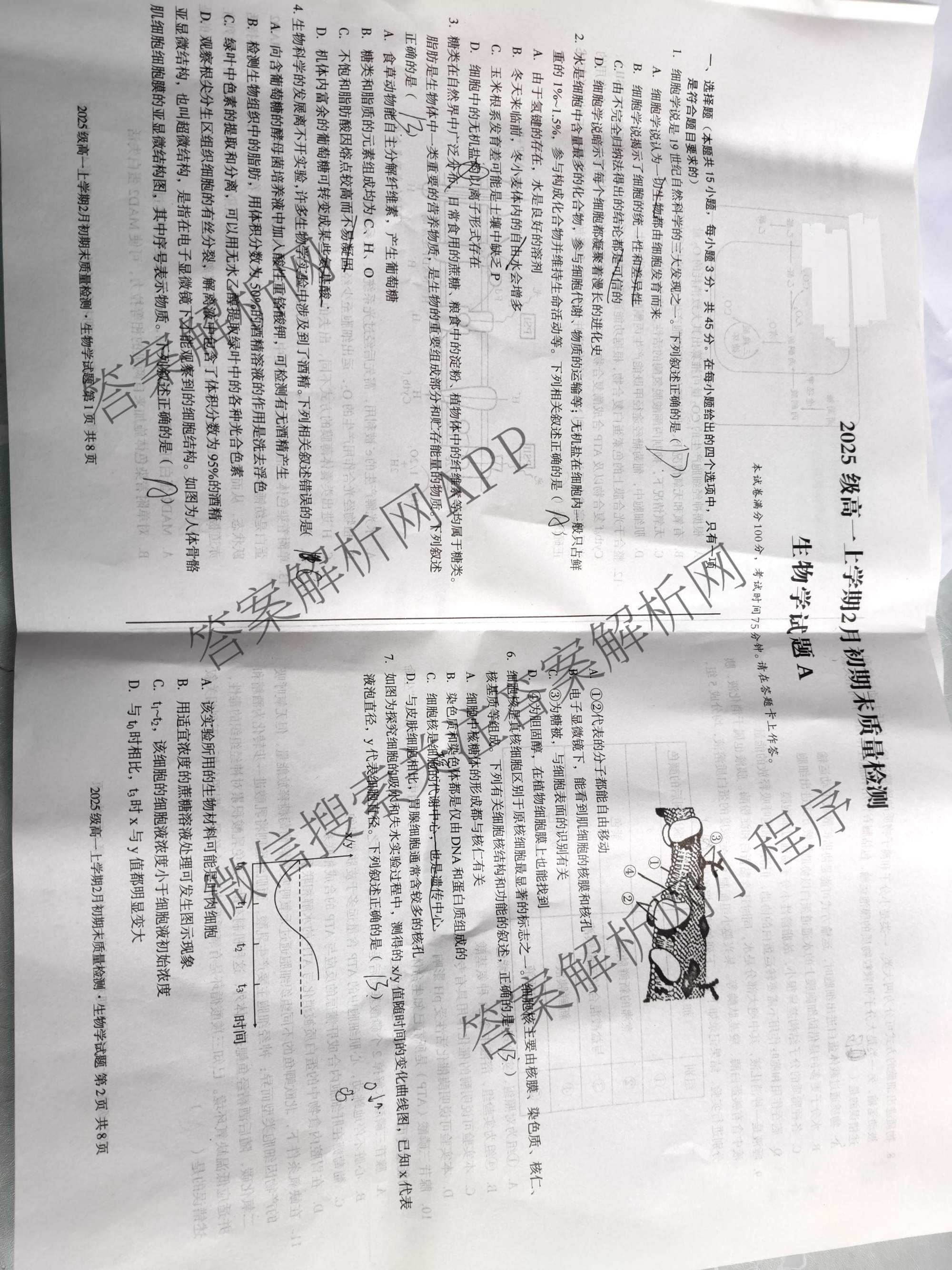 安徽省2025级高一上学期2月初期末质量检测生物(A)试题,目前分科卷答案网已经汇总了安徽省2025级高一上学期2月初期末质量检测生物(A)试题的各科答案和试卷,获取更多地方模拟答案解析,请在关注本站。
