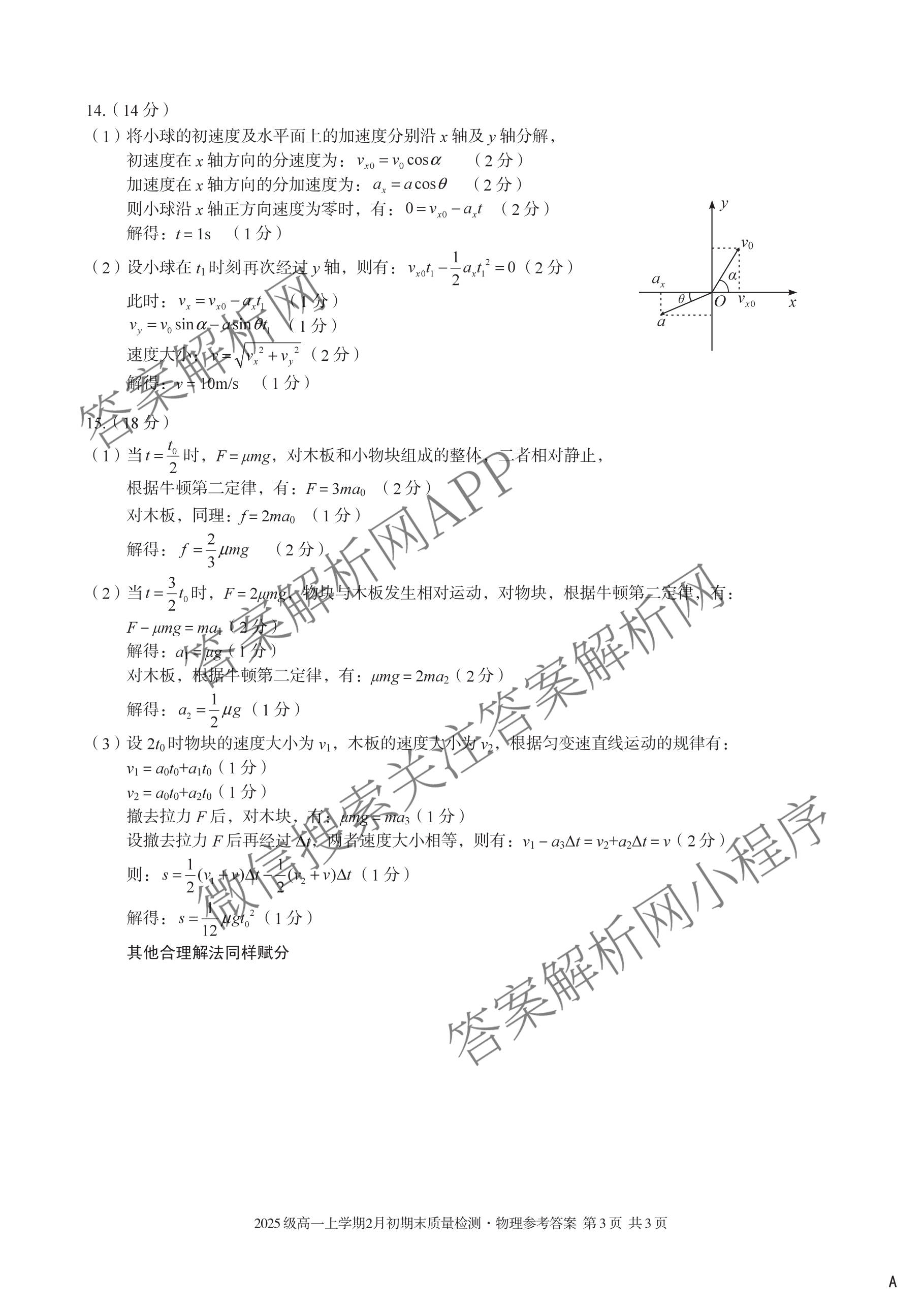 - [高一]安徽省2025级上学期2月初期末质量检测物理(A)答案
