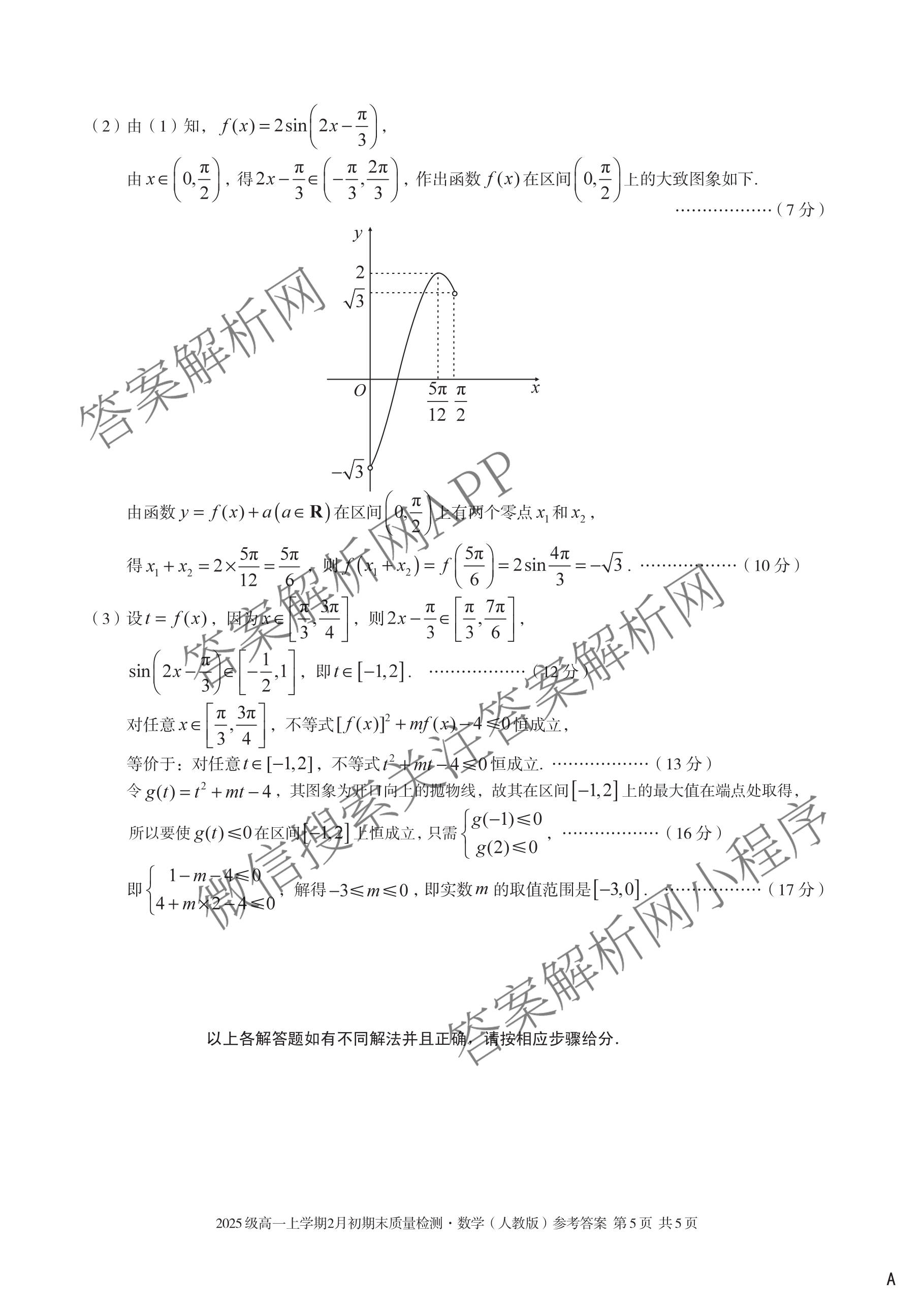 - (高一)安徽省2025级上学期2月初期末质量检测数学(A 人教A版)答案
