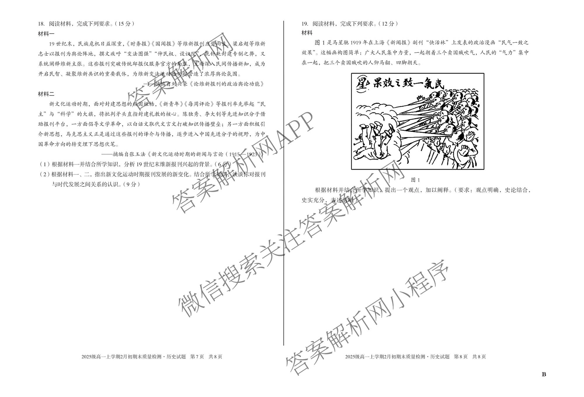 - (高一)安徽省2025级上学期2月初期末质量检测历史(B)试题