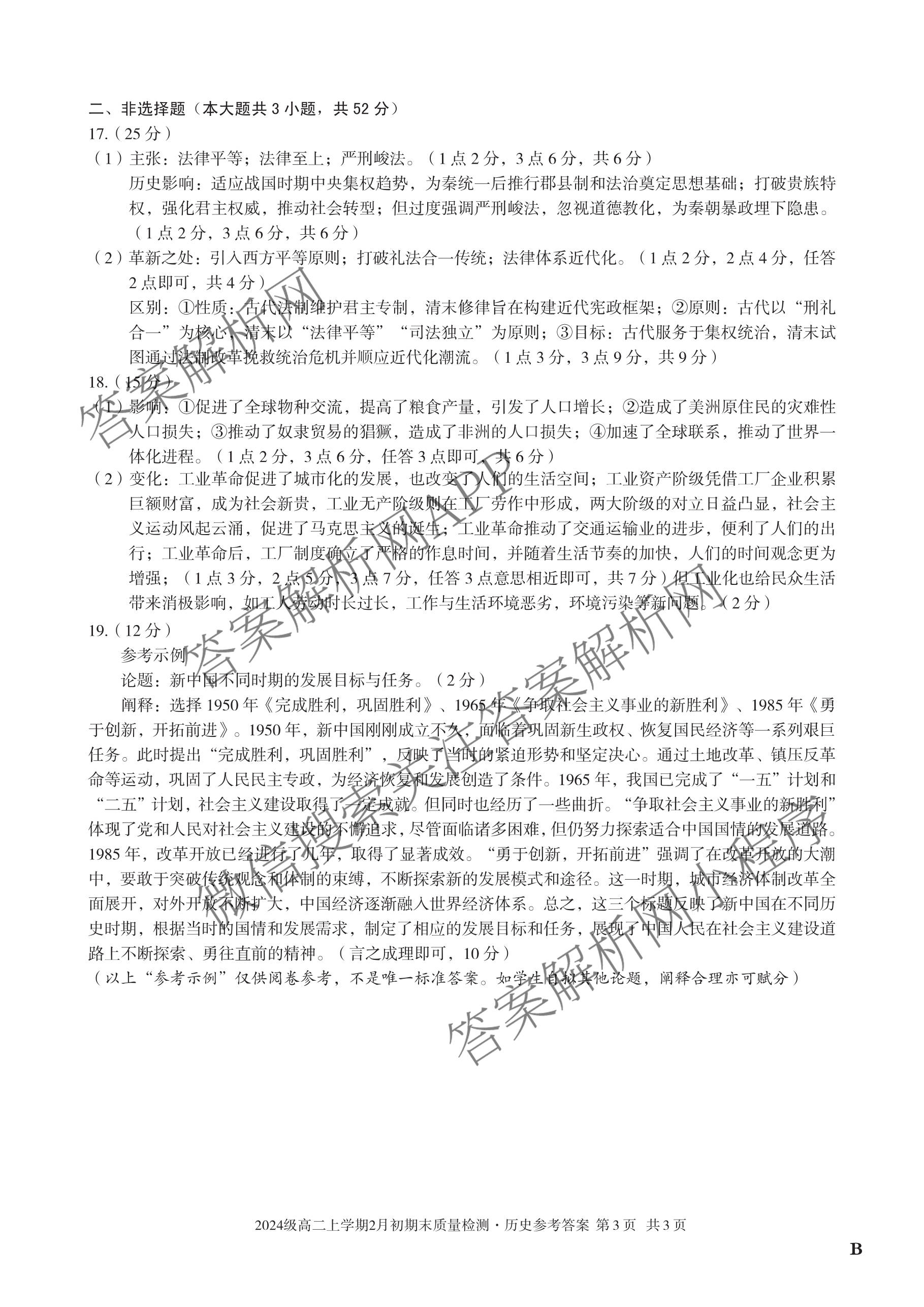 - 安徽省2025级(高一)上学期2月初期末质量检测历史(B)答案