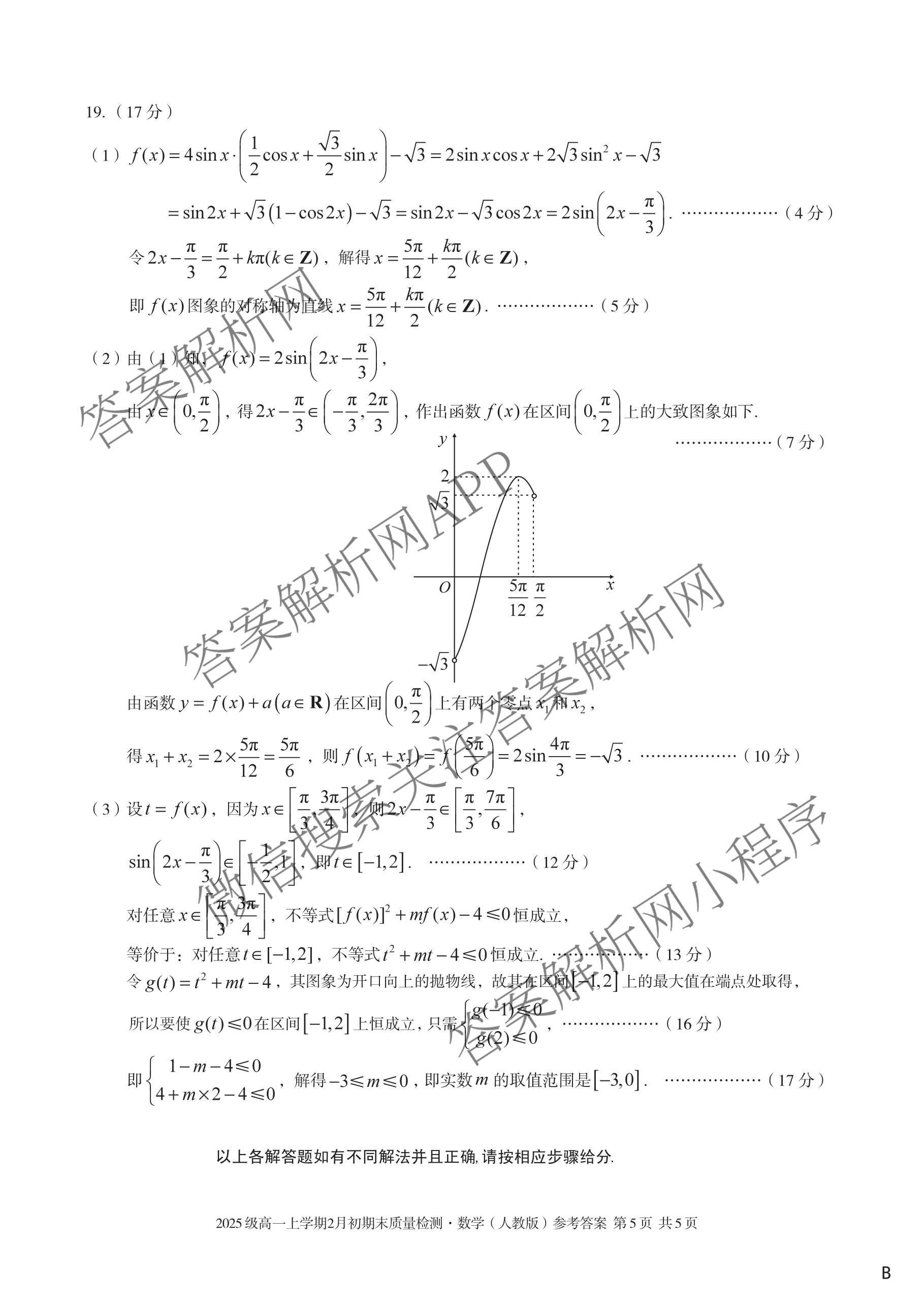 - [高一]安徽省2025级上学期2月初期末质量检测数学(试题B 人教A版)答案