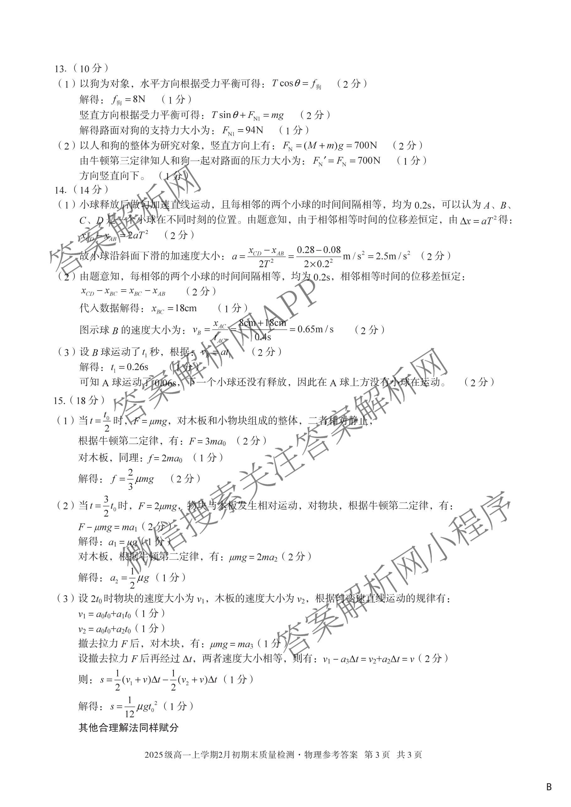 - 高一安徽省2025级上学期2月初期末质量检测物理(B)答案