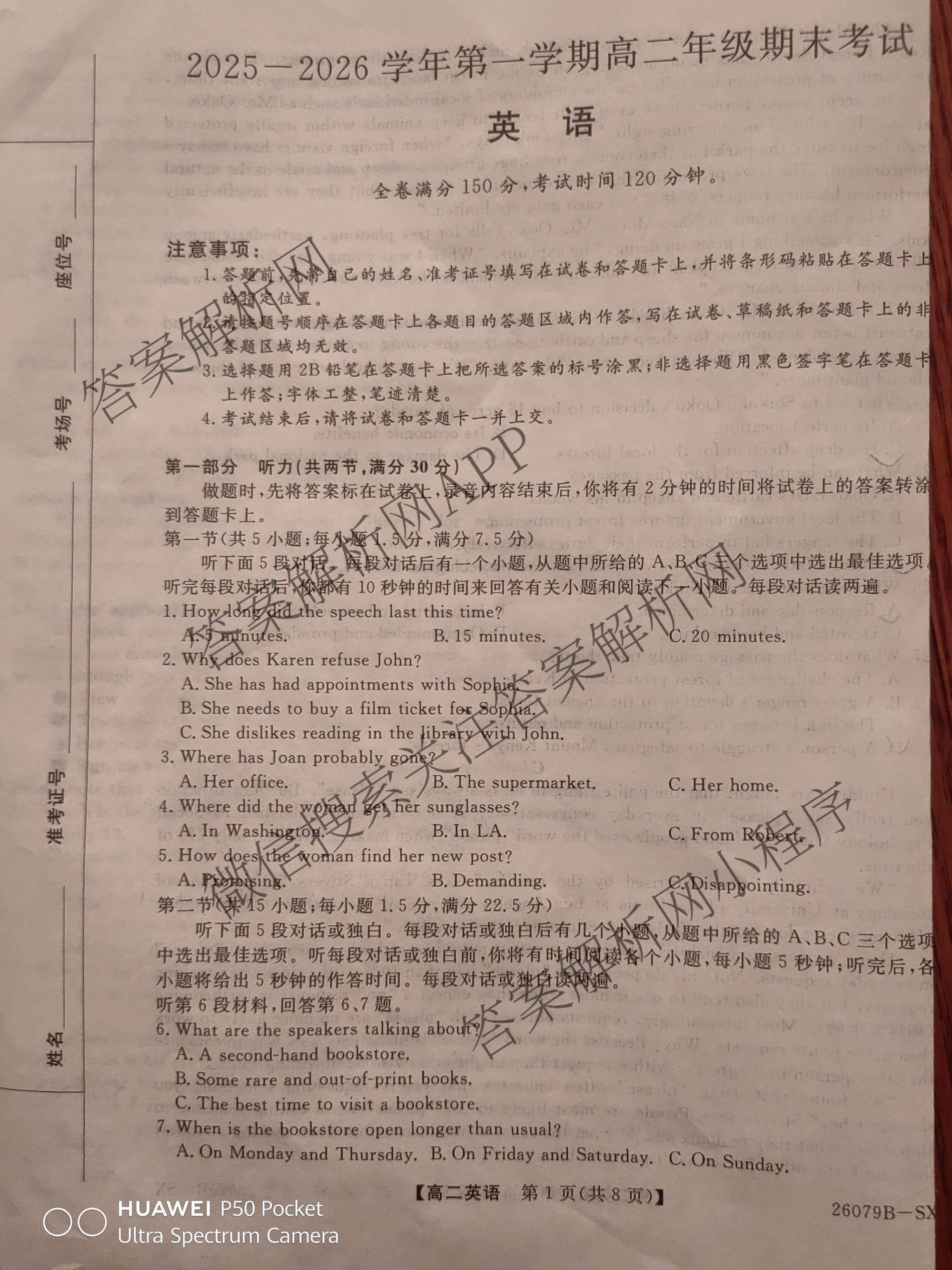 山西省2025-2026学年第一学期高二年级期末考试(26079B-SX)英语试题,目前分科卷答案网已经汇总了山西省2025-2026学年第一学期高二年级期末考试(26079B-SX)英语试题的各科答案和试卷,获取更多地方模拟答案解析,请在关注本站。