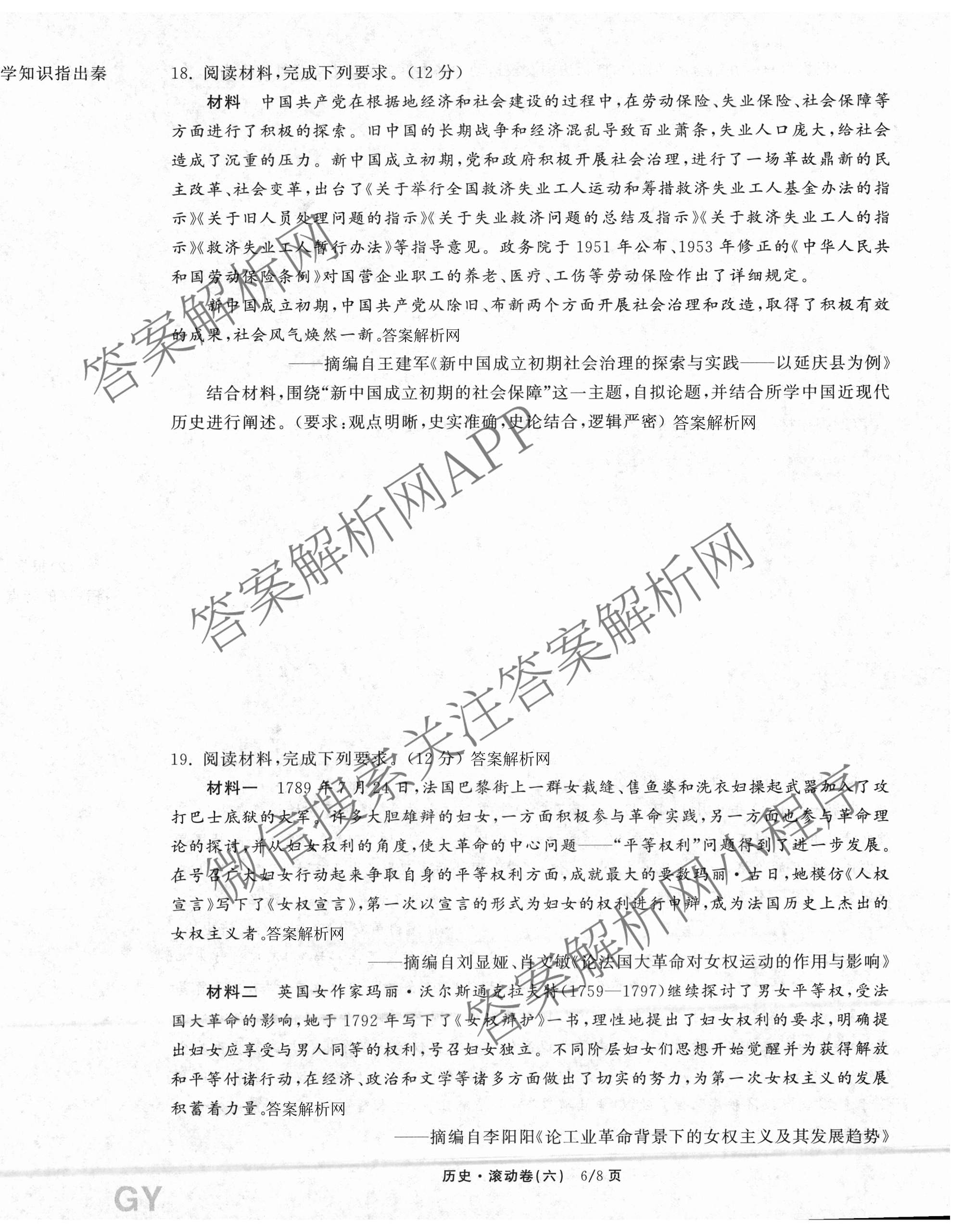 - 2025-2026(高三)(衡中同卷)学年度复习滚动卷(六)6历史(GY)答案
