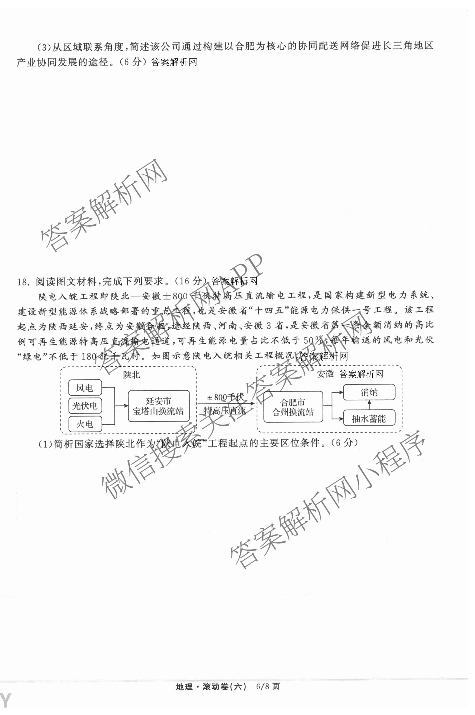 - 2025~2026(衡中同卷)学年度高三复习滚动卷(六)6地理(WY)答案