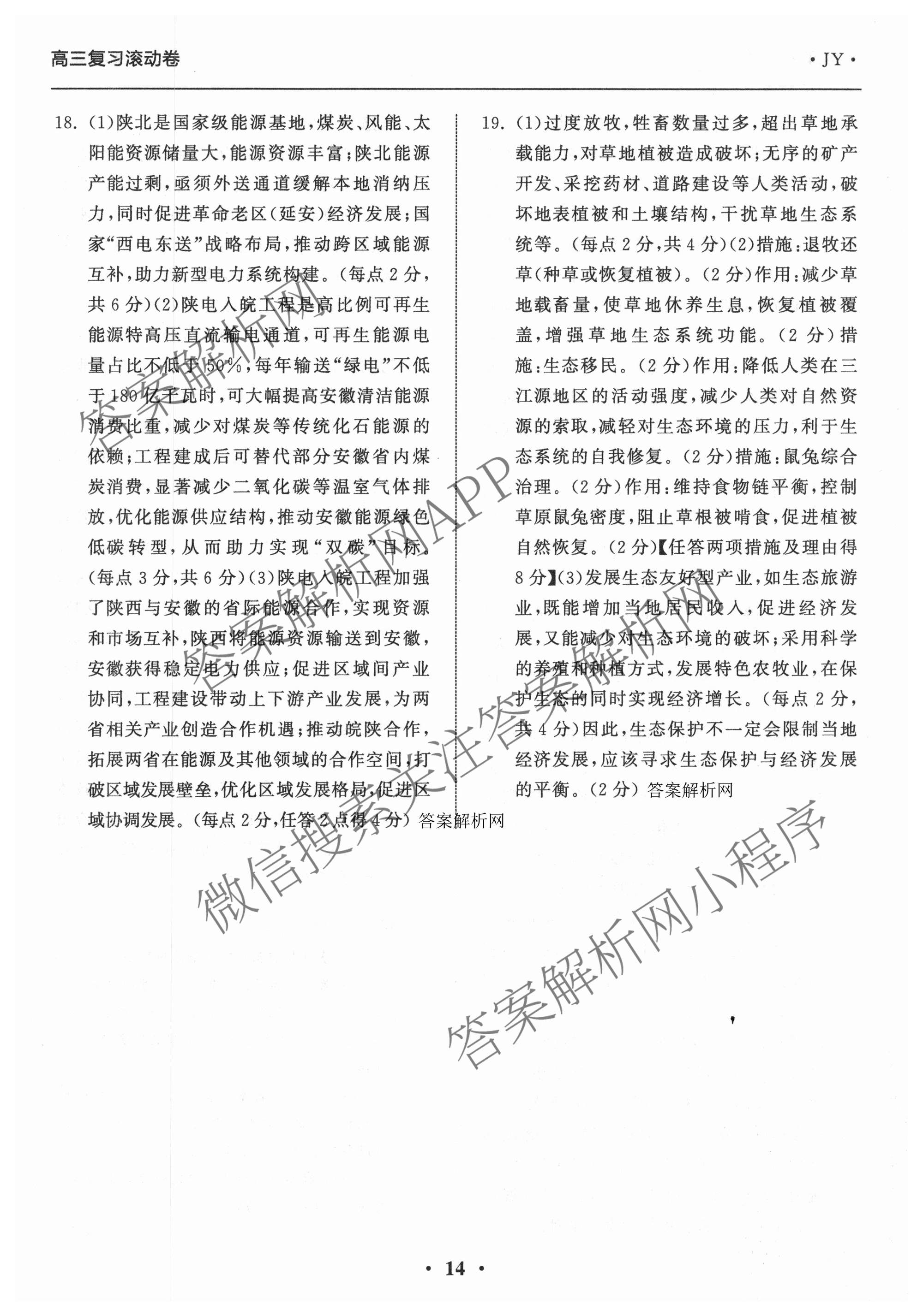 2025~2026[衡中同卷]·学年度[高三]复习滚动卷(六)6地理(JY)答案