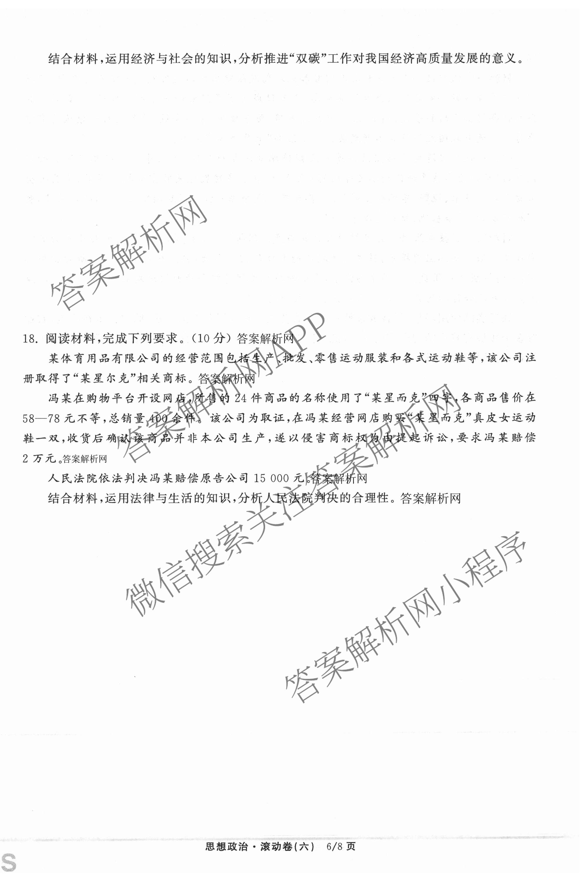- 2025-2026(衡中同卷)学年度[高三]复习滚动卷(六)6政治(GS)答案