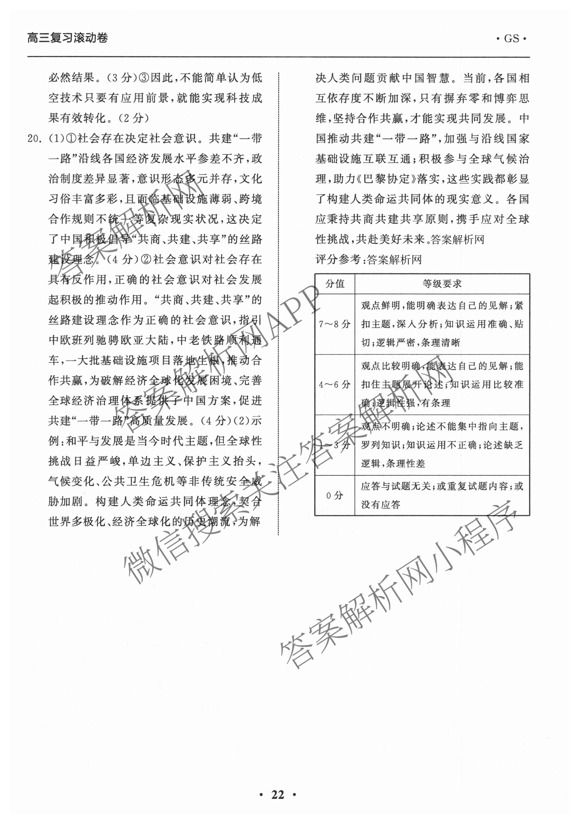 - 2025-2026(衡中同卷)学年度[高三]复习滚动卷(六)6政治(GS)答案
