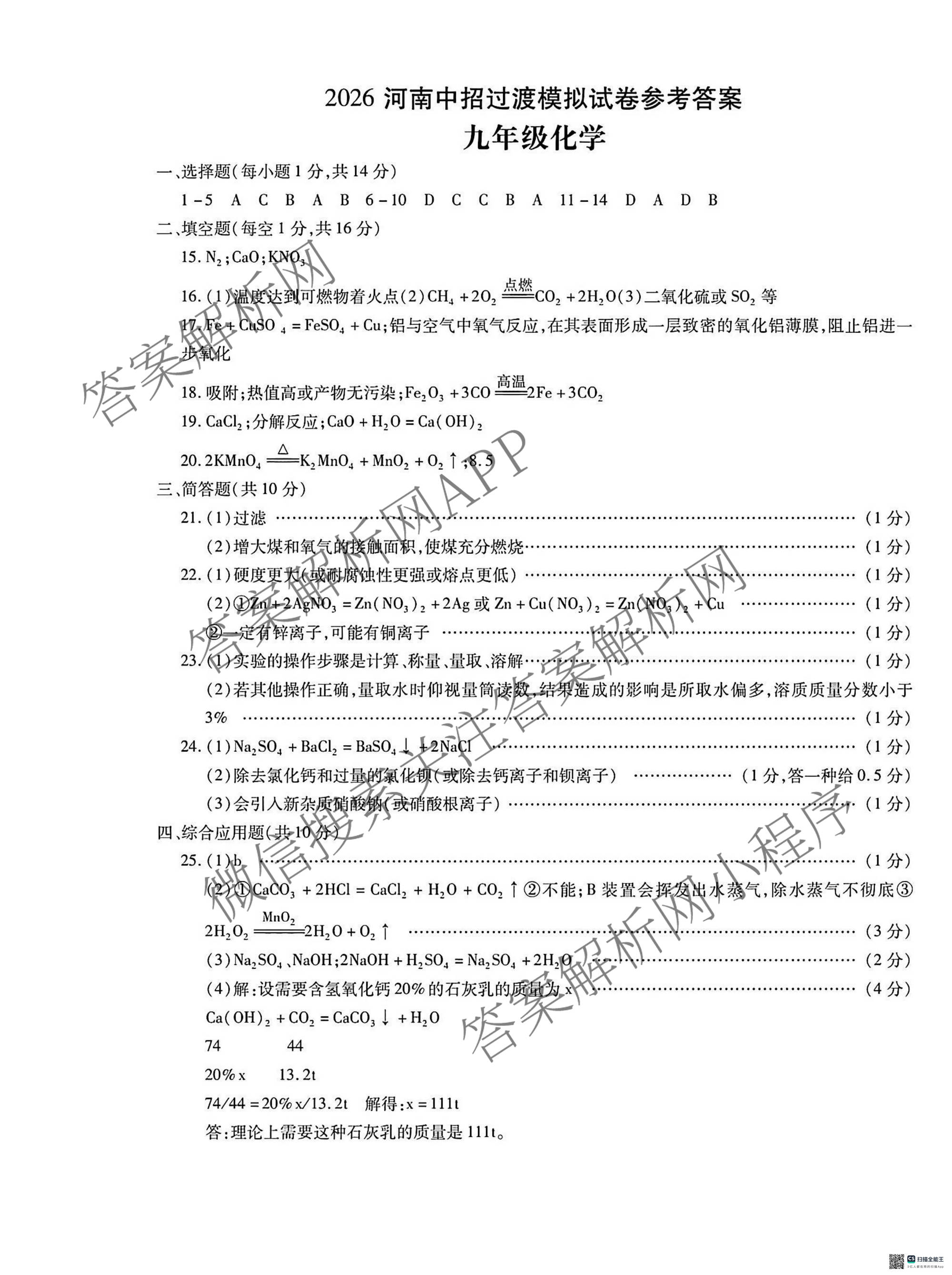 2026河南中招过渡模拟试卷(2月)化学试题,目前分科卷答案网已经汇总了2026河南中招过渡模拟试卷(2月)化学试题的各科答案和试卷,获取更多地方模拟答案解析,请在关注本站。