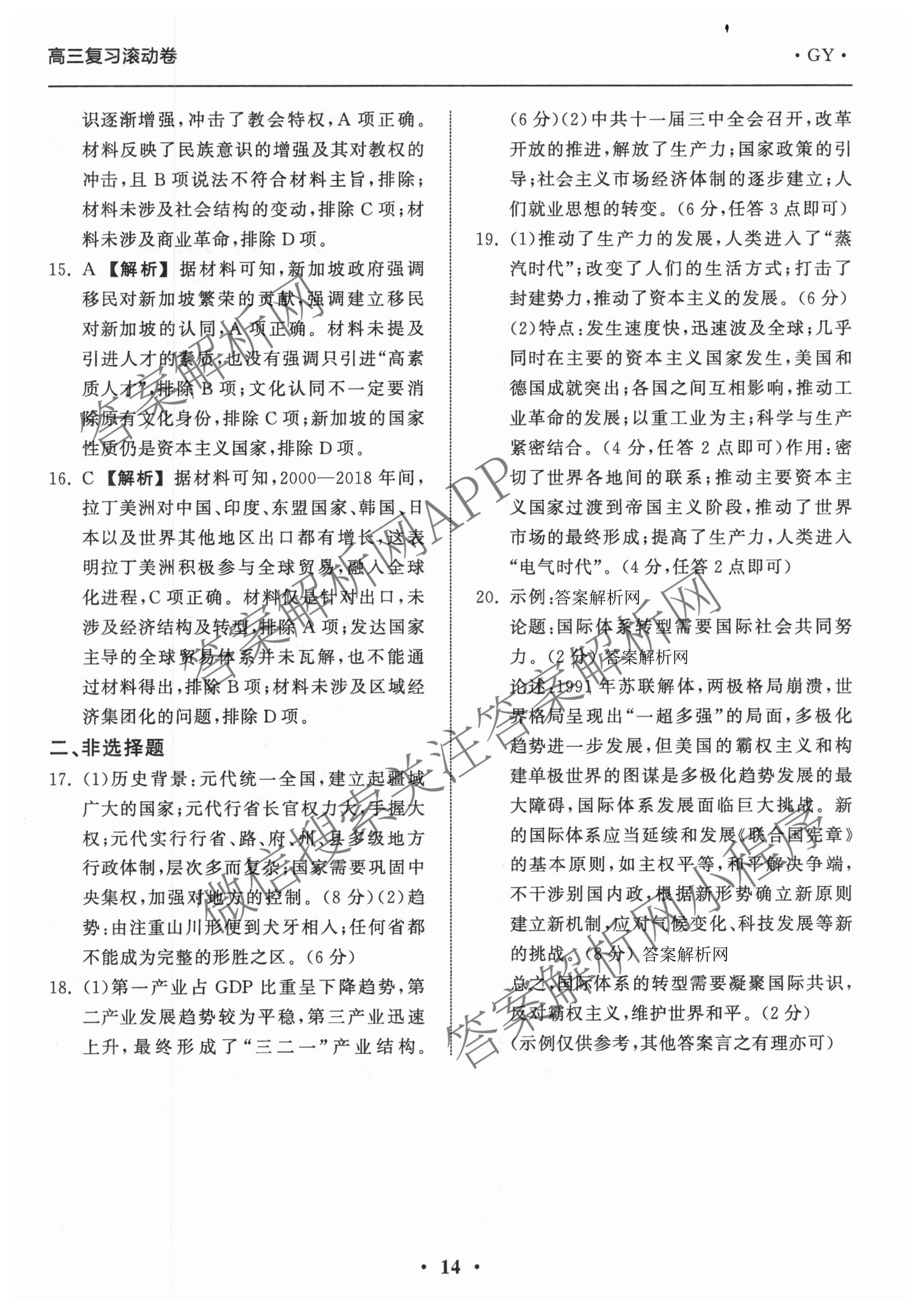 - 2025~2026(衡中同卷)学年度[高三]复习滚动卷(四)4历史(GY)答案