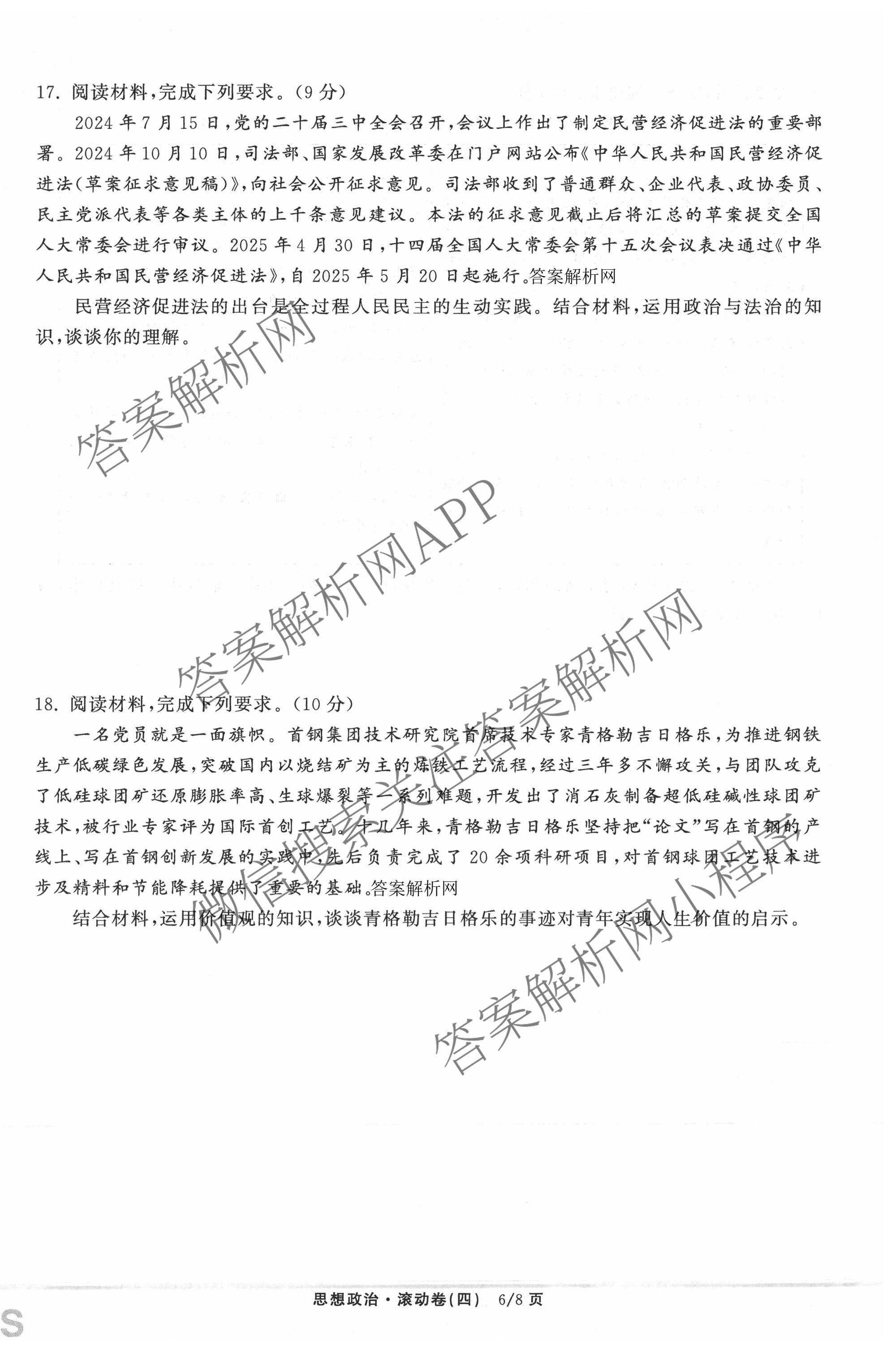 - 2025-2026(高三)(衡中同卷)学年度复习滚动卷(四)4政治答案